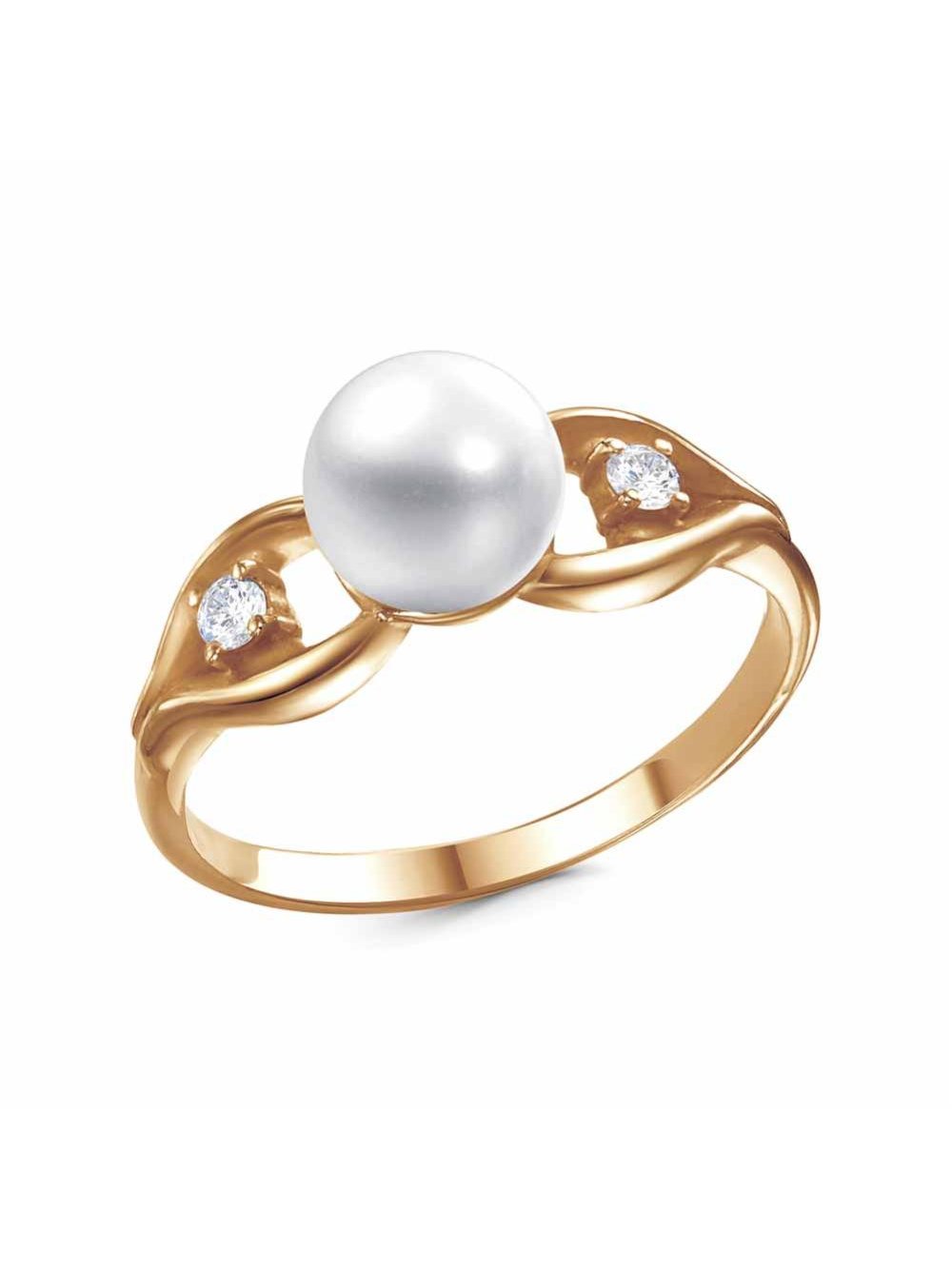 Кольцо бижутерия, покрытие - золочение, вставка - культивированный жемчуг, фианит (недрагоценный камень)