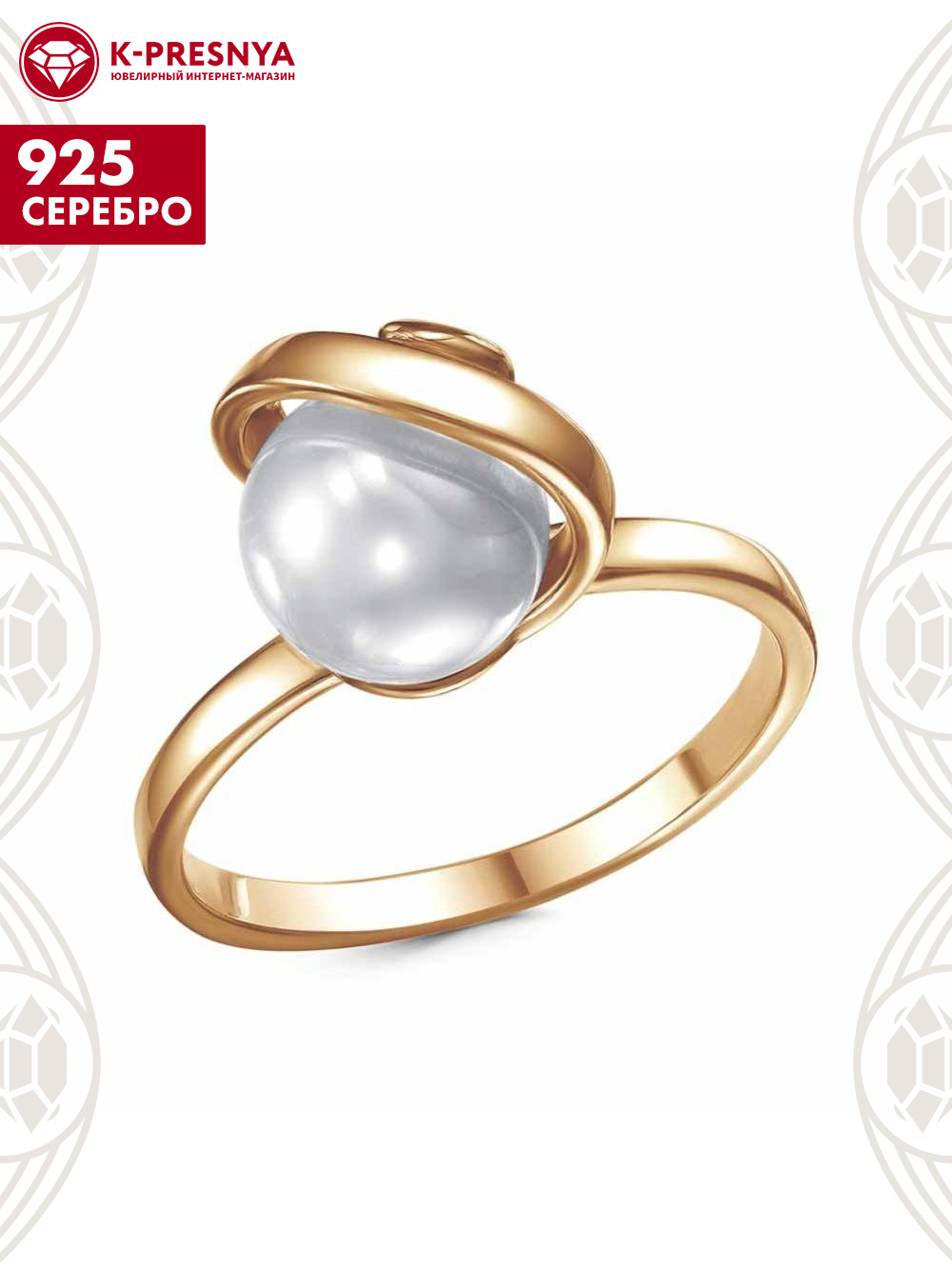 Кольцо серебро 925 пробы, покрытие - золочение, вставка - имитация жемчуга