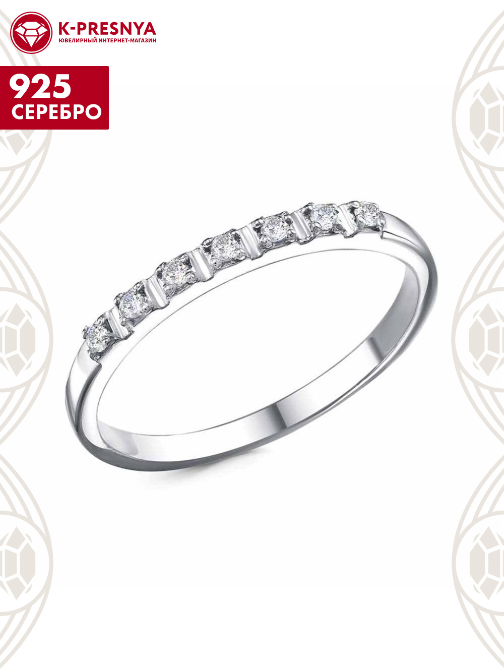 Кольцо серебро 925 пробы, покрытие - родирование, вставка - фианит (недрагоценный камень)