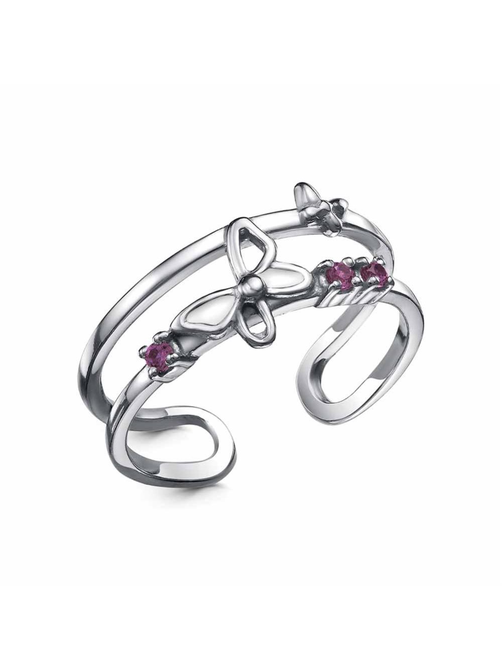Кольцо бижутерия, покрытие - платинирование, отделка - эмаль, вставка - синтетический корунд