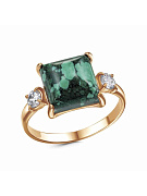 Кольцо бижутерия, покрытие - золочение, вставка - искусственный малахит , фианит (недрагоценный камень)