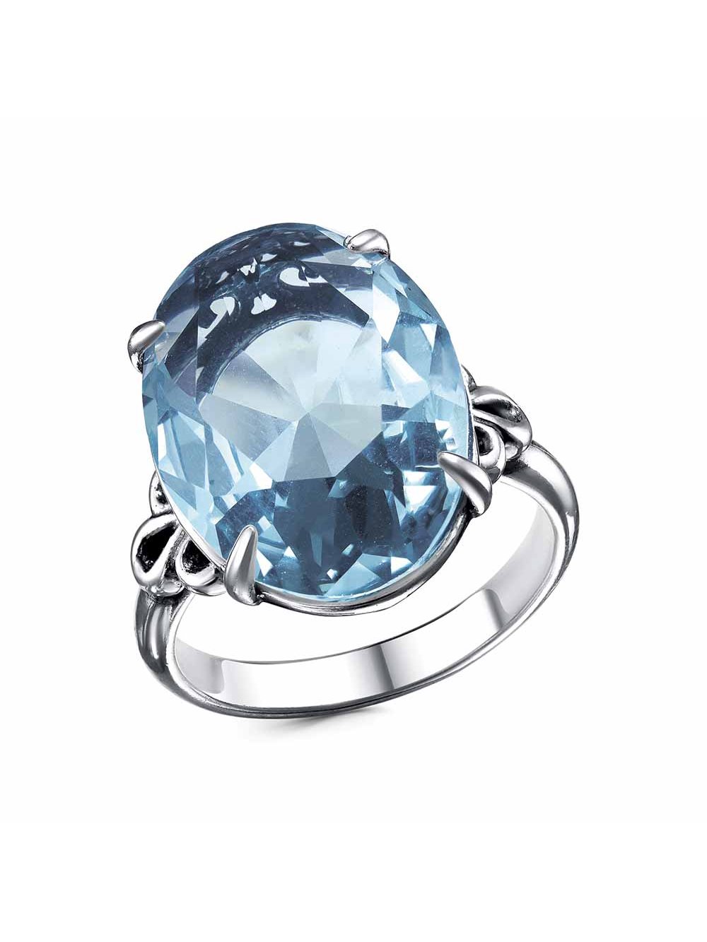 Кольцо бижутерия, покрытие - серебрение с оксидированием, вставка - стекло ювелирное собственной огранки