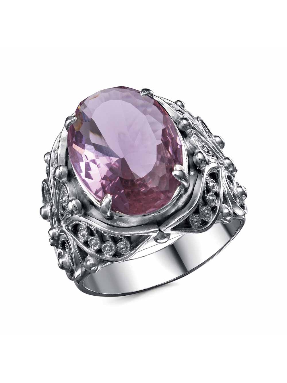 Кольцо серебро 925 пробы, покрытие - оксидирование, вставка - стекло ювелирное собственной огранки