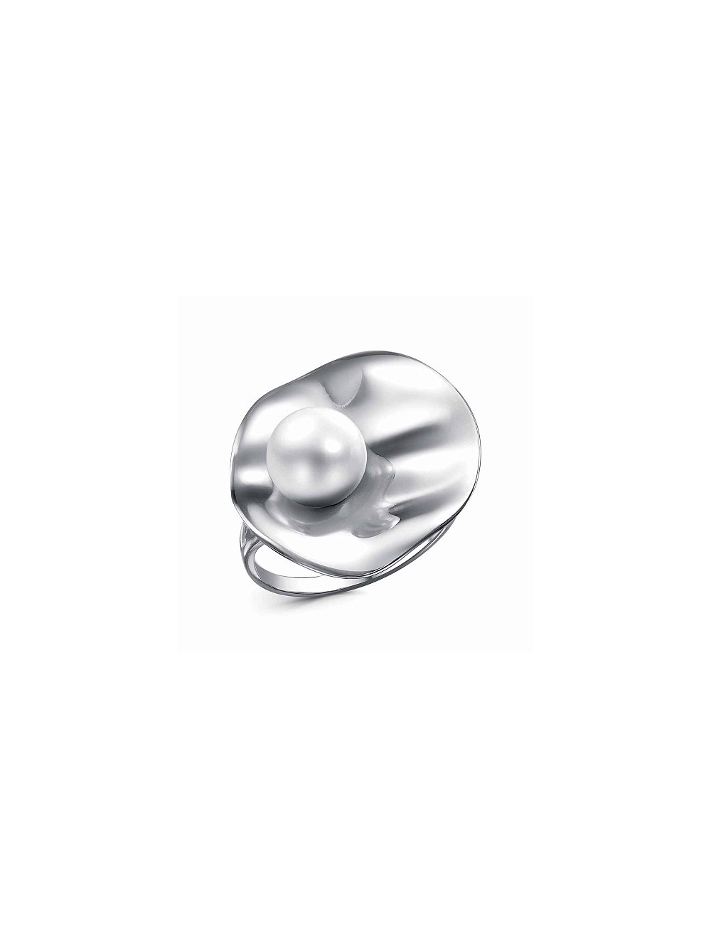 Кольцо серебро 925 пробы, покрытие - платинирование, вставка - имитация жемчуга