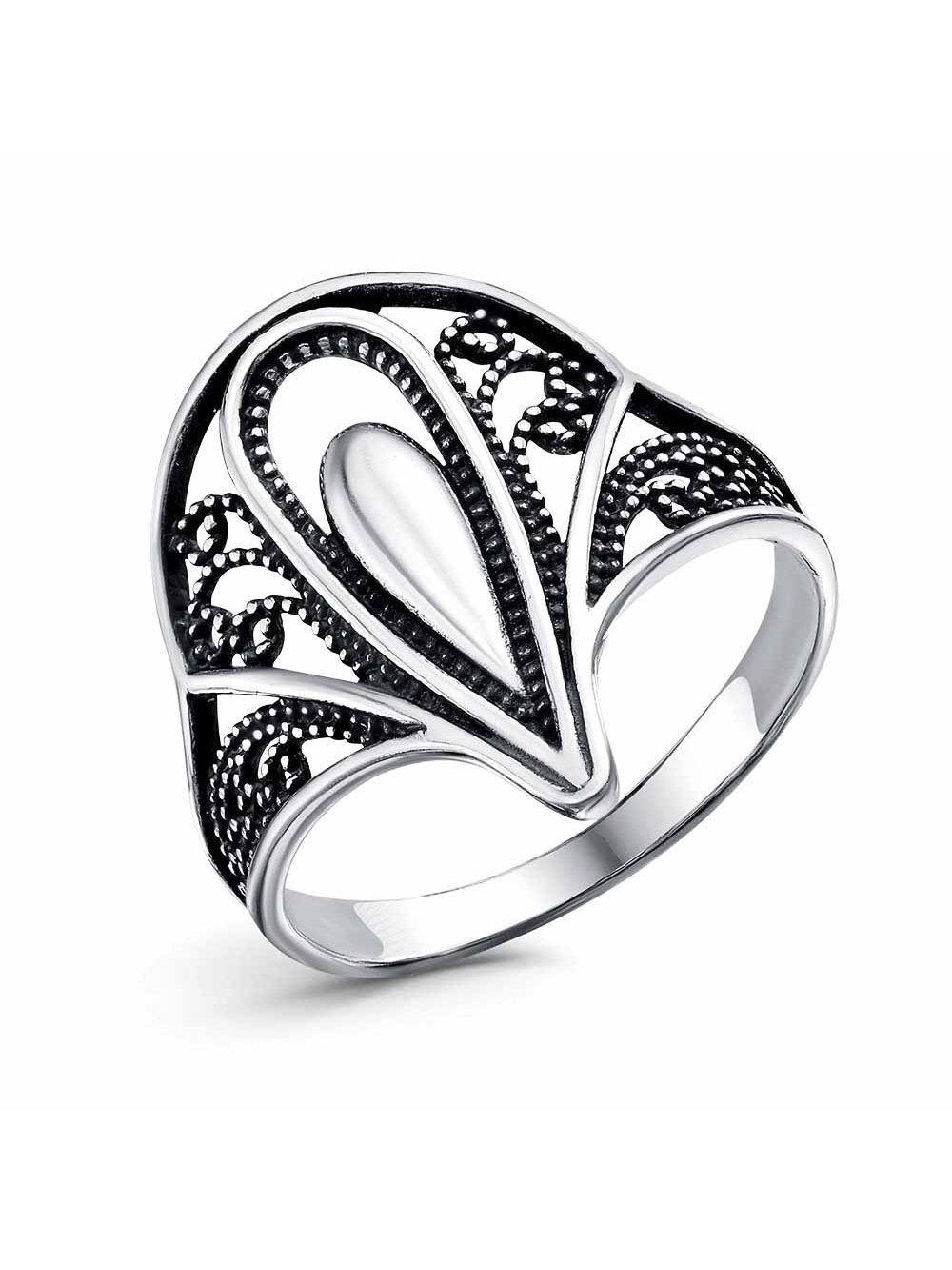 Кольцо бижутерия, покрытие - серебрение с оксидированием, без вставок