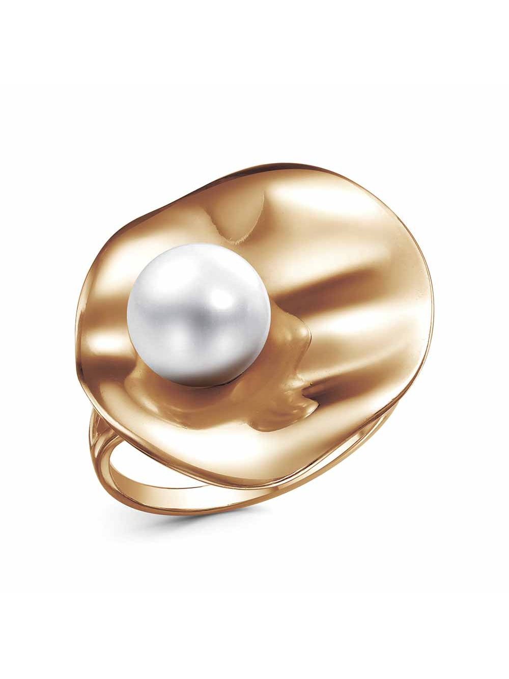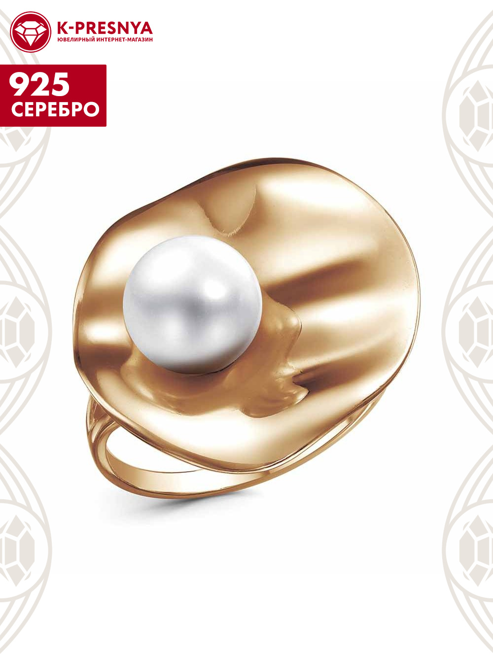 Кольцо серебро 925 пробы, покрытие - золочение, вставка - имитация жемчуга