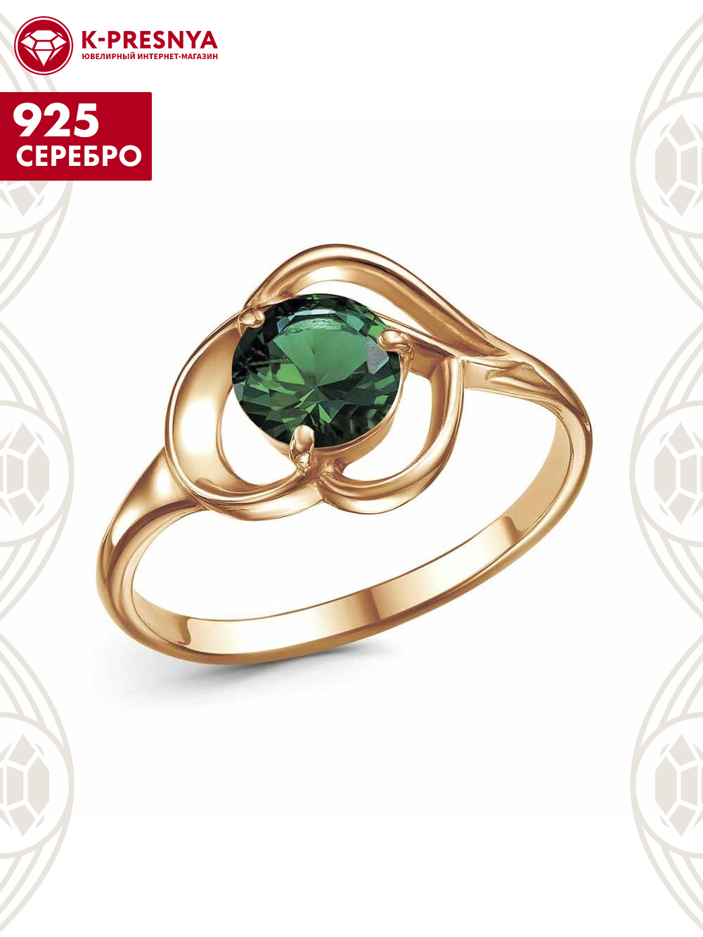 Кольцо серебро 925 пробы, покрытие - золочение, вставка - искусственная шпинель