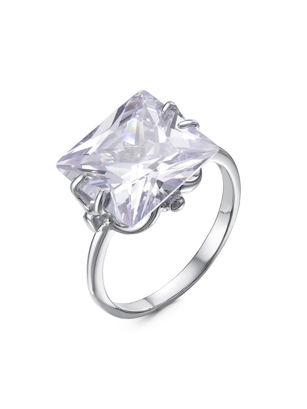 Кольцо серебро 925 пробы, покрытие - родирование, вставка - горный хрусталь