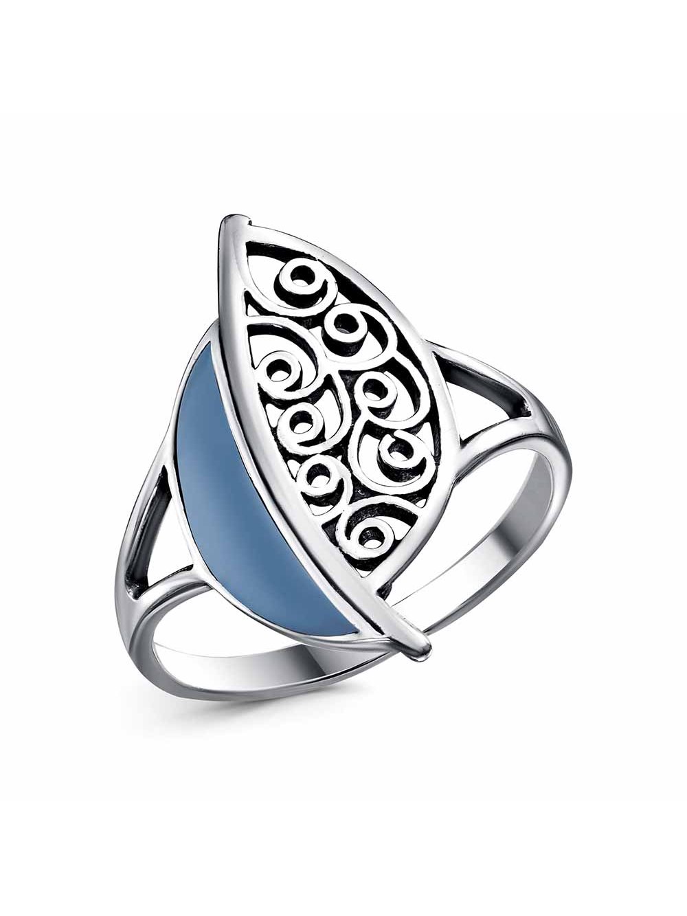Кольцо бижутерия, покрытие - серебрение с оксидированием, отделка - эмаль, без вставок