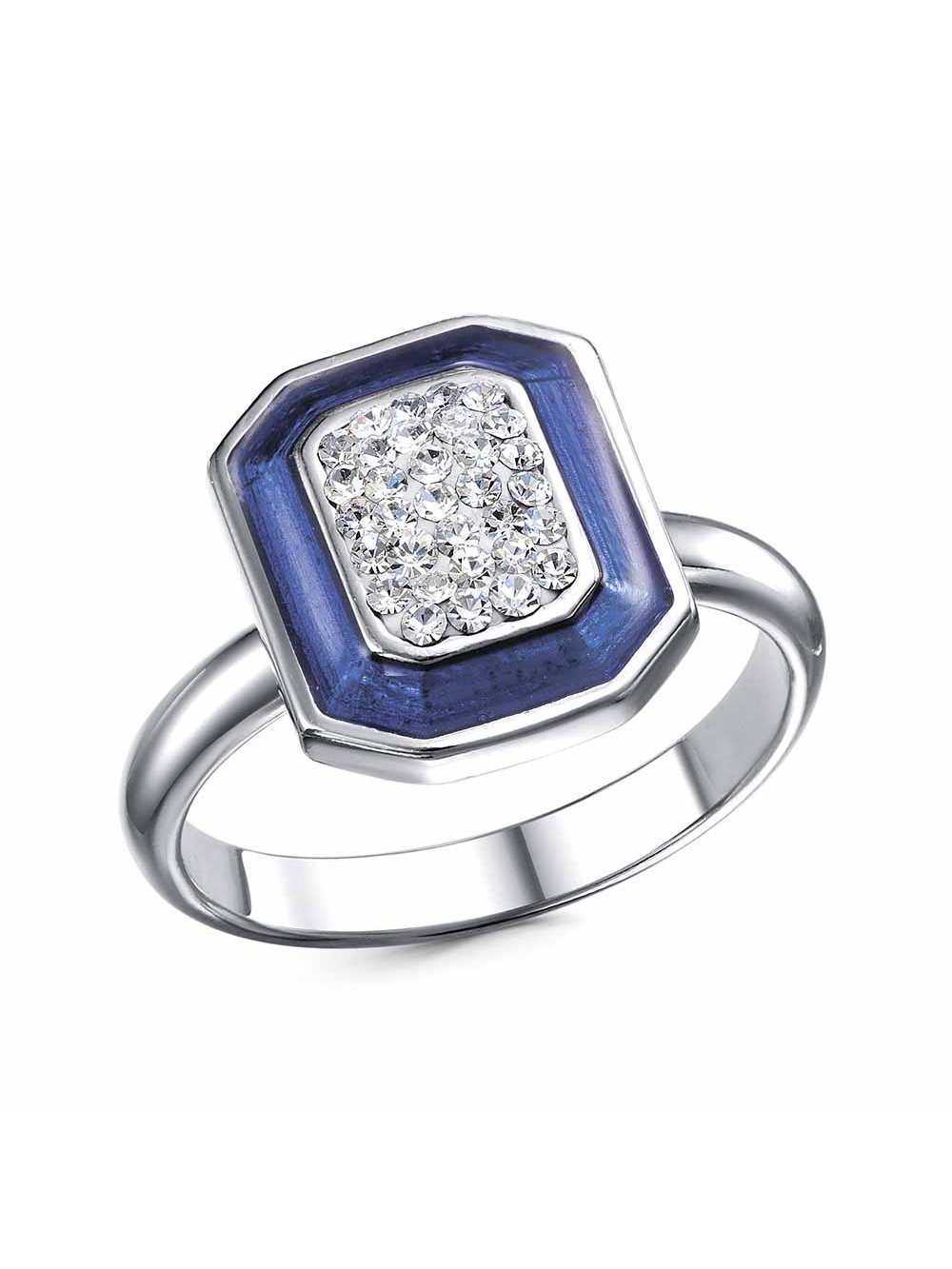Кольцо серебро 925 пробы, покрытие - платинирование, отделка - эмаль, вставка - стекло ювелирное preciosa