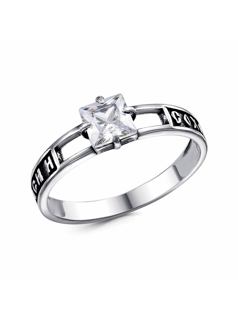 Кольцо серебро 925 пробы, покрытие - оксидирование, вставка - фианит (недрагоценный камень)
