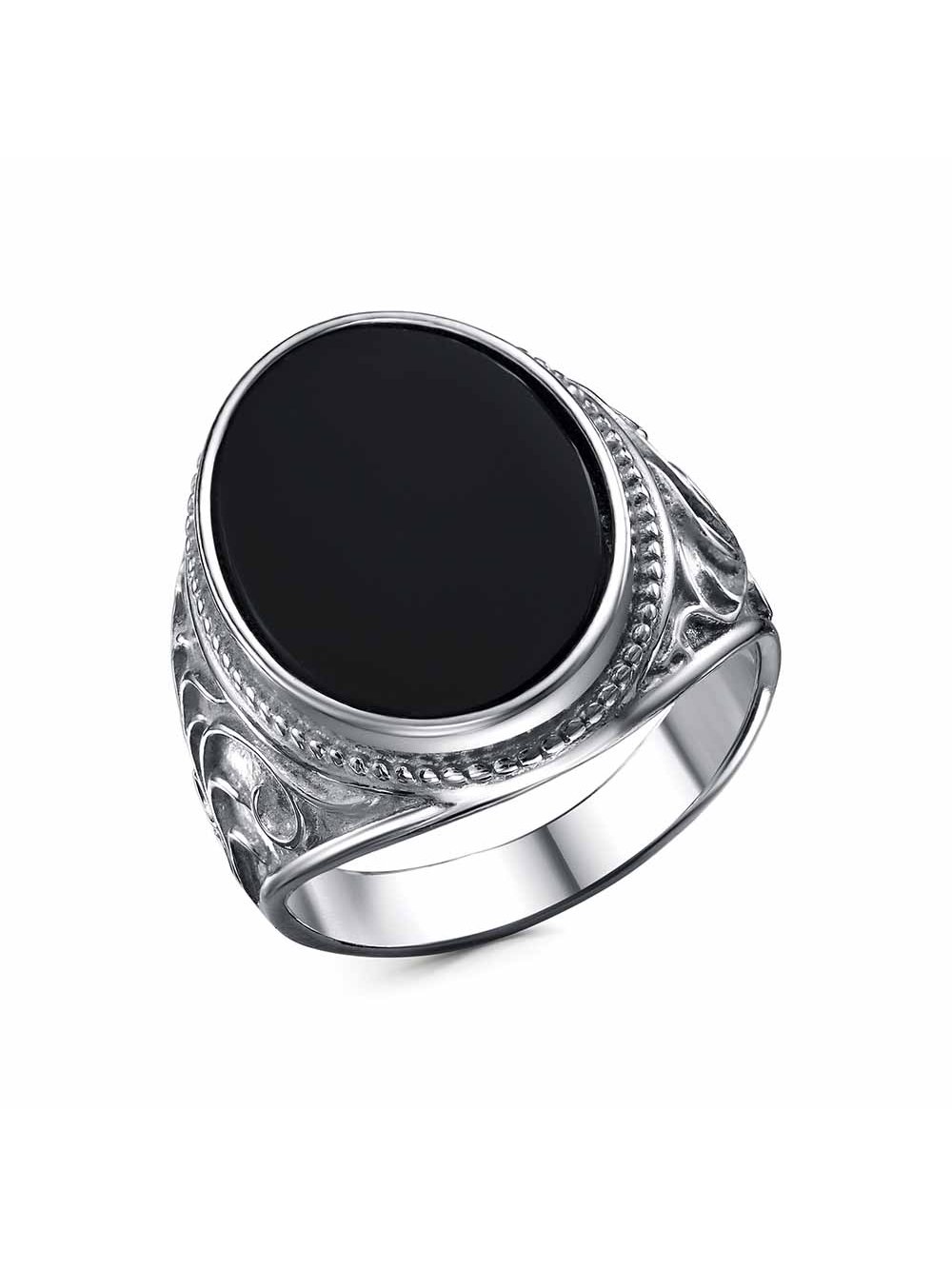 Кольцо бижутерия, покрытие - серебрение с оксидированием, вставка - искусственный агат черный