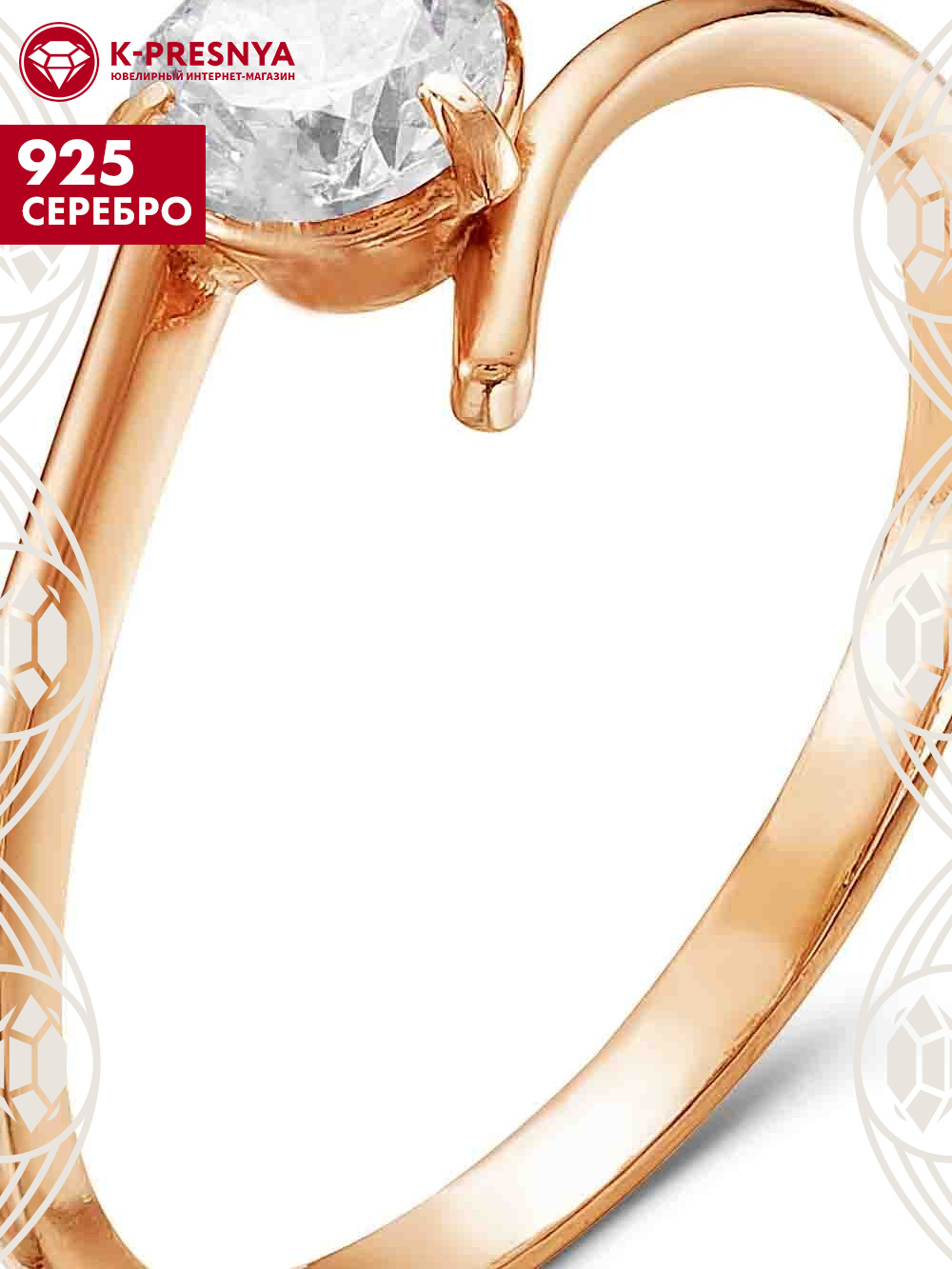 Кольцо серебро 925 пробы, покрытие - золочение, вставка - фианит (недрагоценный камень)