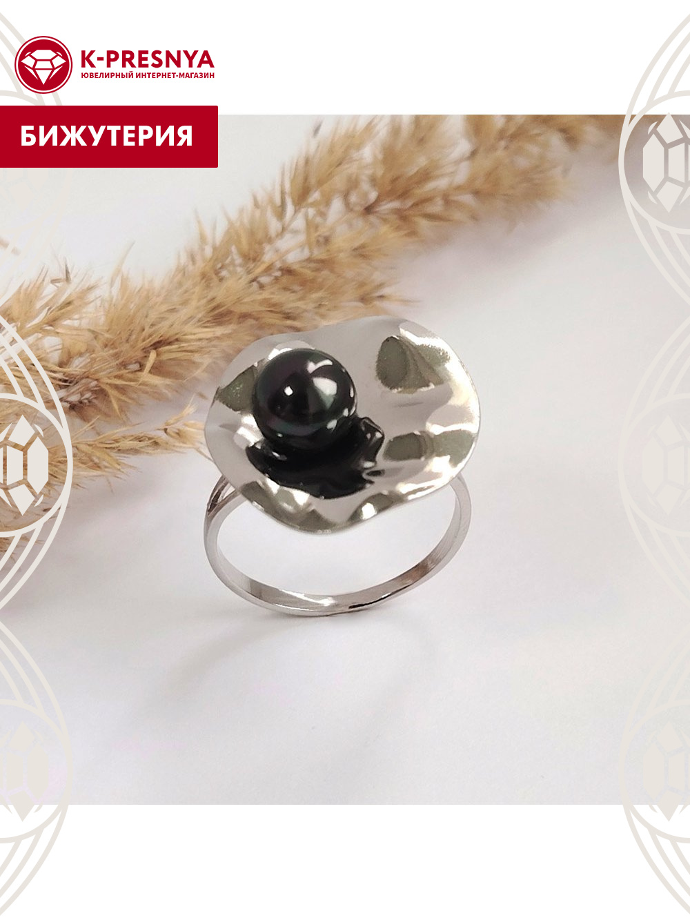-Кольцо бижутерия, покрытие - платинирование, вставка - имитация жемчуга