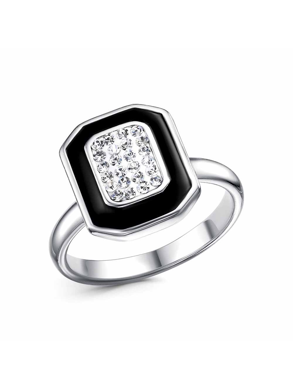 Кольцо бижутерия, покрытие - платинирование, отделка - эмаль, вставка - стекло ювелирное preciosa