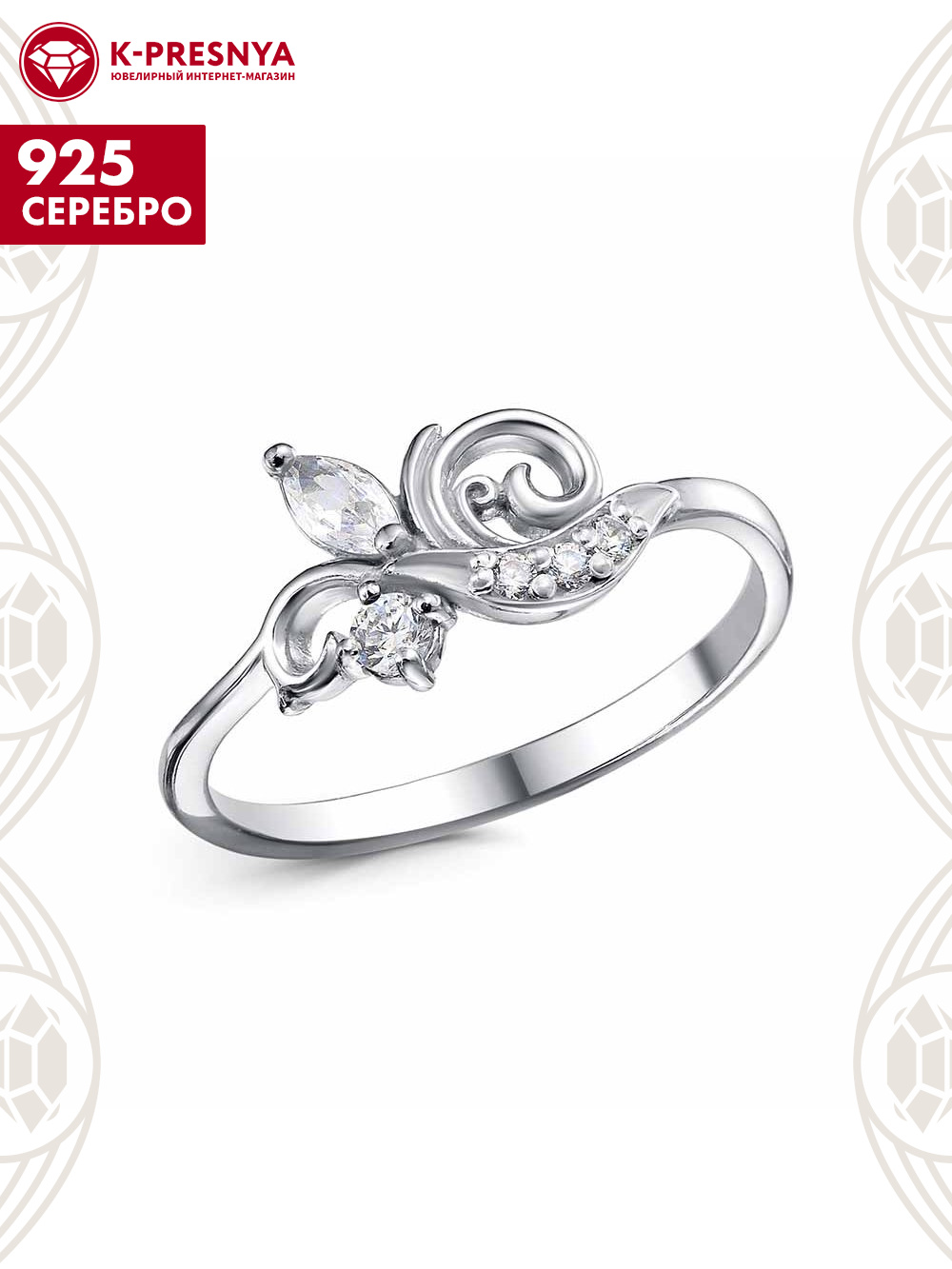 Кольцо серебро 925 пробы, покрытие - родирование, вставка - фианит (недрагоценный камень)