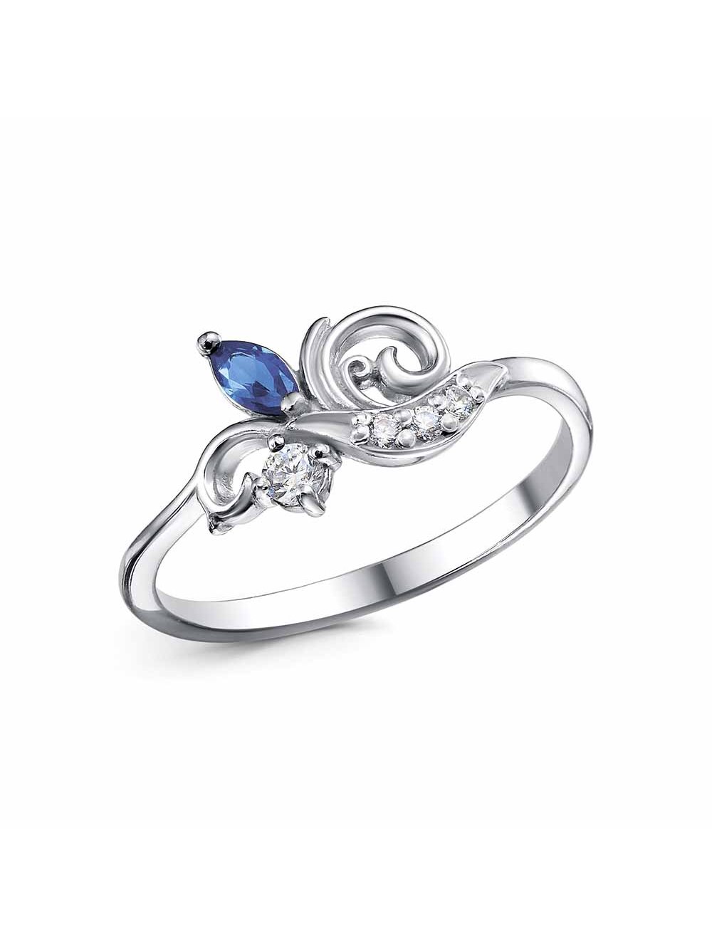 Кольцо серебро 925 пробы, покрытие - родирование, вставка - искусственная шпинель, фианит (недрагоценный камень)