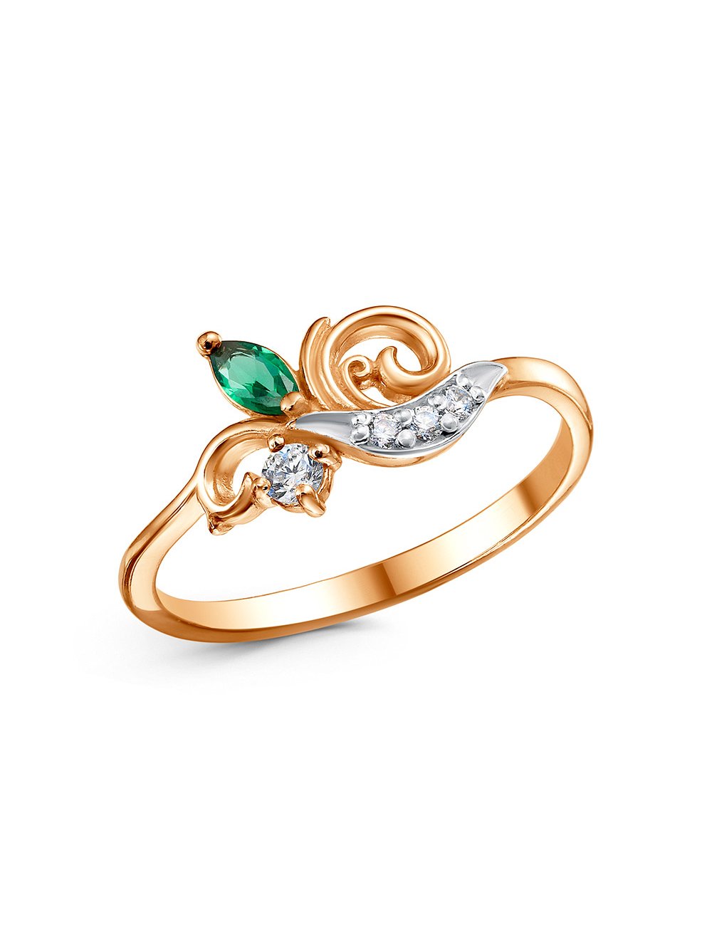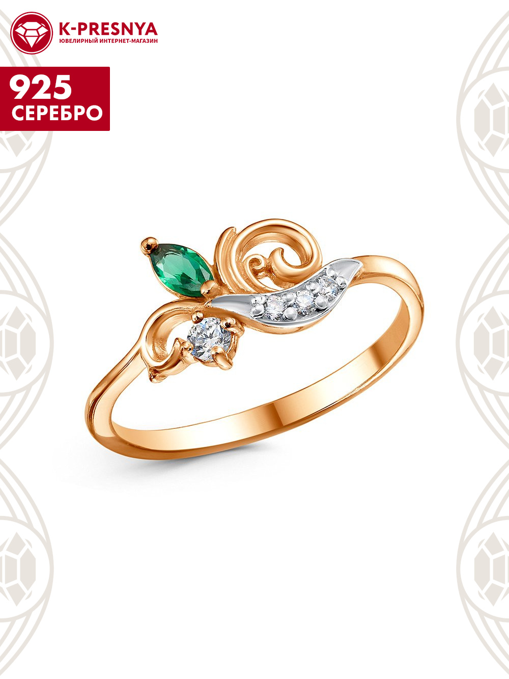 Кольцо серебро 925 пробы, покрытие - золочение, выборочное родирование