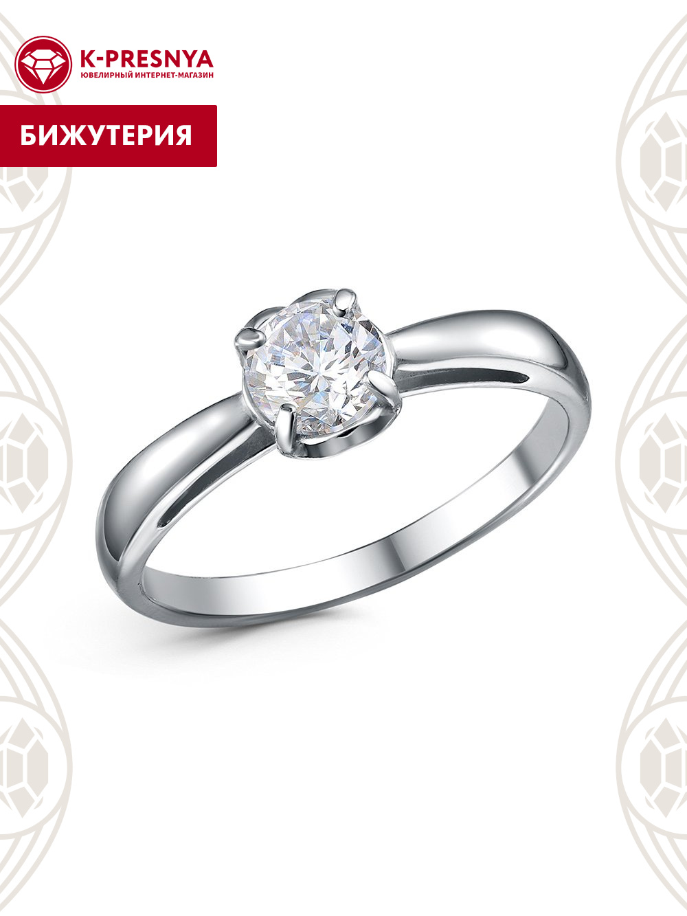Кольцо бижутерия, покрытие - платинирование, вставка - фианит (недрагоценный камень)