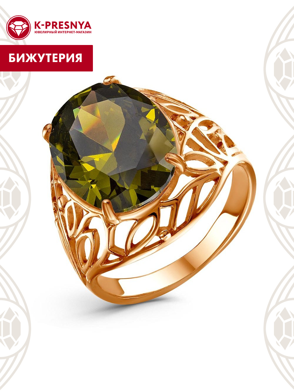 Кольцо бижутерия, покрытие - золочение, вставка - фианит (недрагоценный камень)