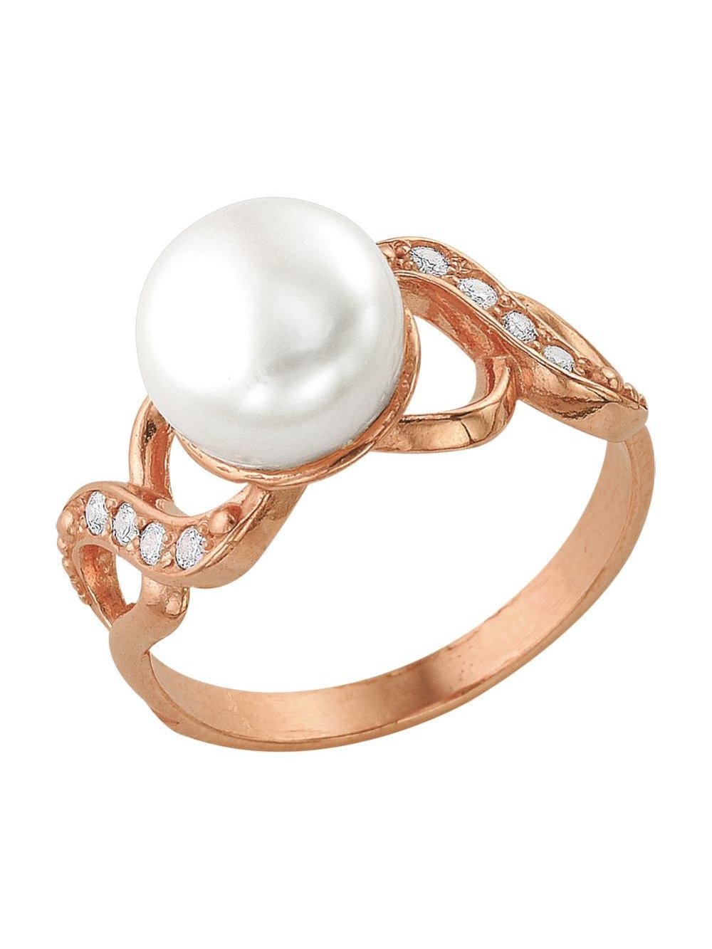 Кольцо бижутерия, покрытие - золочение, вставка - культивированный жемчуг, стекло ювелирное preciosa