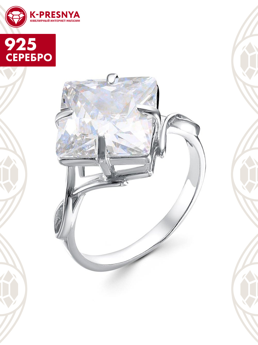 Кольцо серебро 925 пробы, покрытие - родирование, вставка - горный хрусталь
