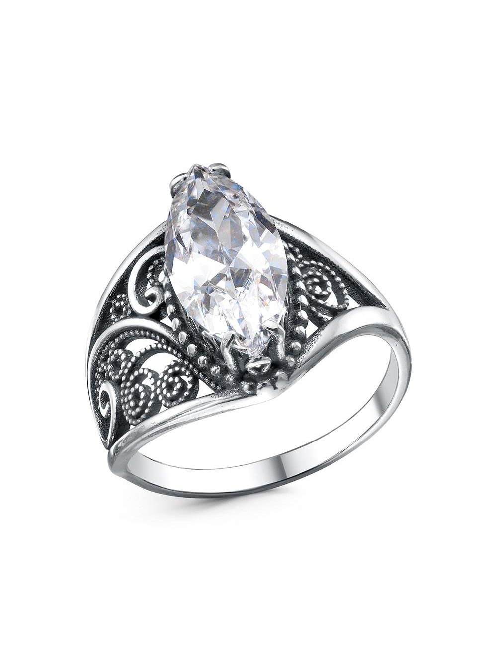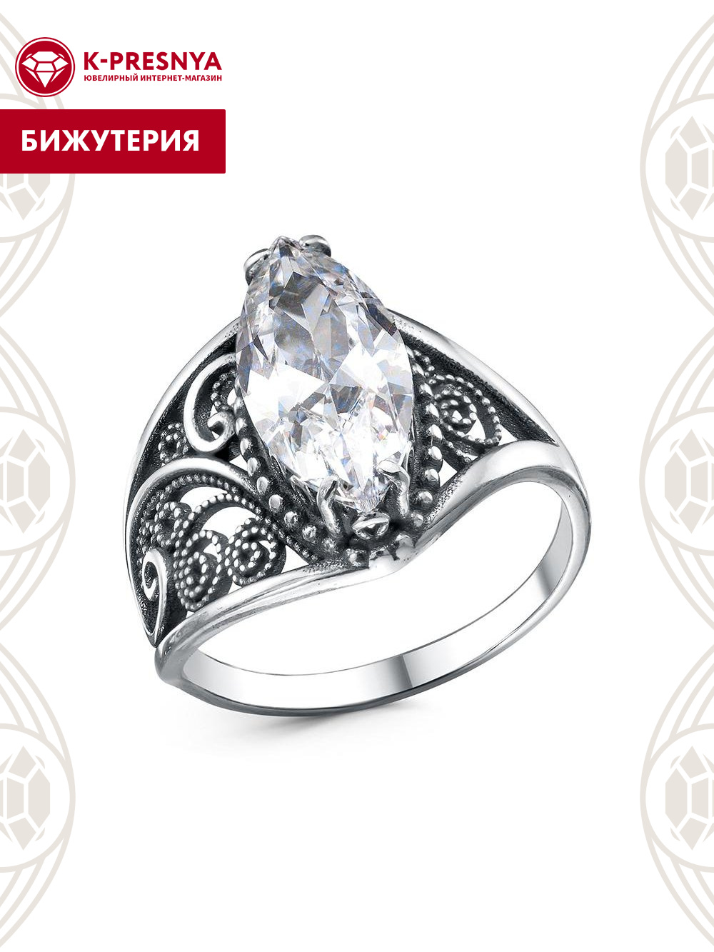 Кольцо бижутерия, покрытие - серебрение с оксидированием, вставка - фианит (недрагоценный камень)
