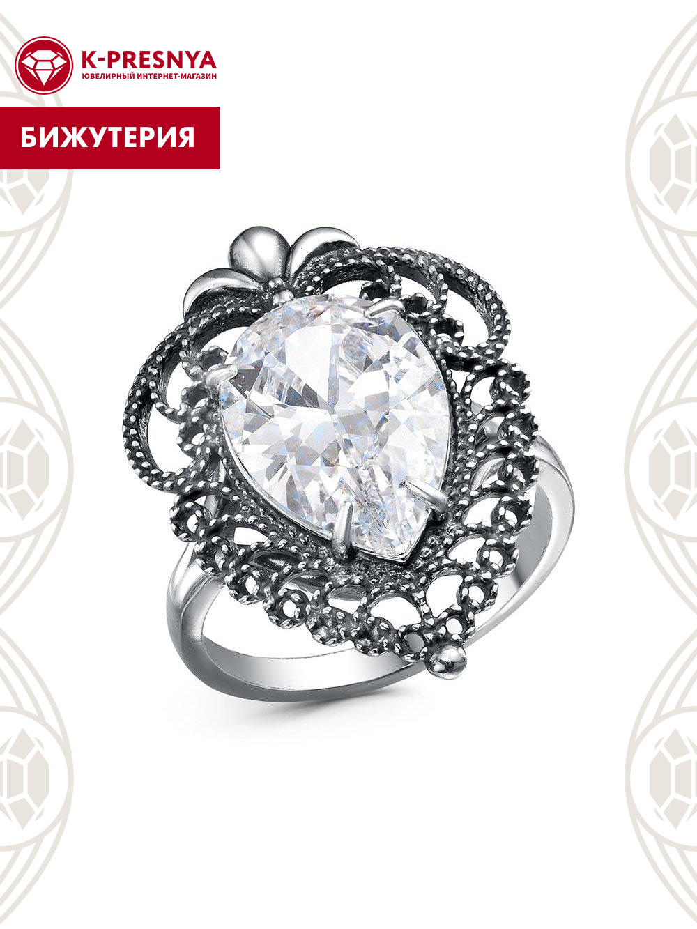Кольцо бижутерия, покрытие - серебрение с оксидированием, вставка - фианит (недрагоценный камень)