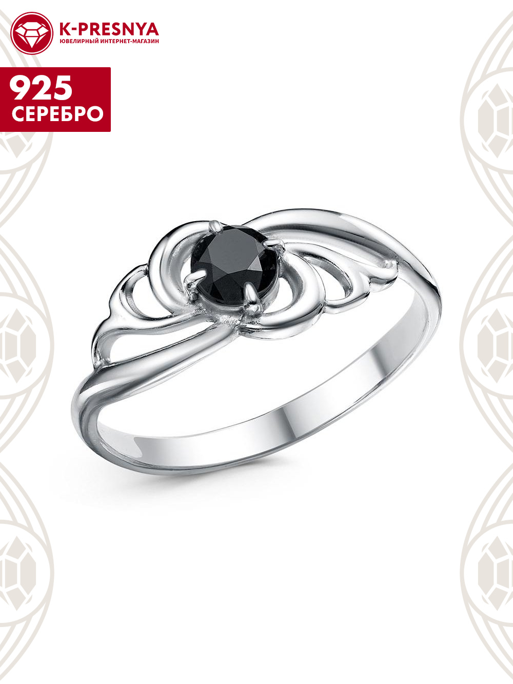 Кольцо серебро 925 пробы, покрытие - родирование, вставка - фианит (недрагоценный камень)