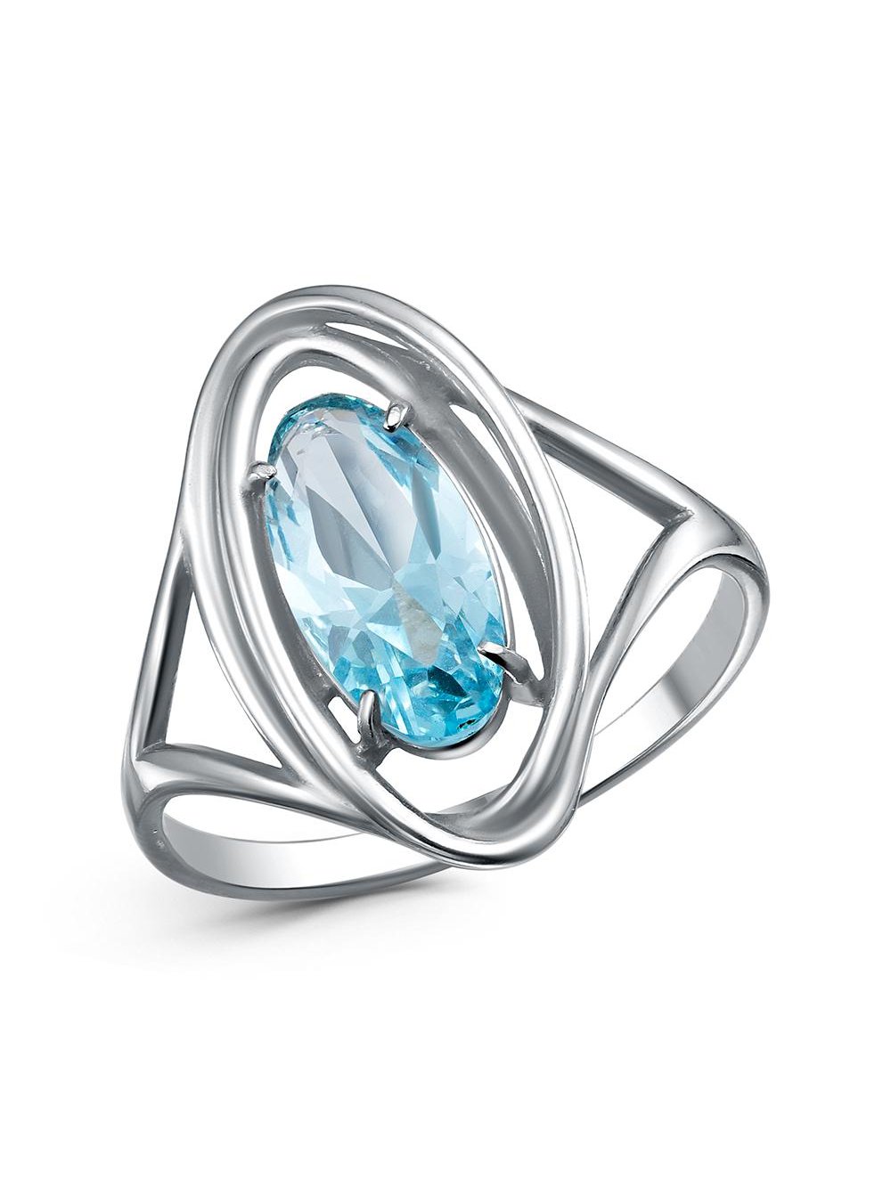 Кольцо серебро 925 пробы, покрытие - родирование, вставка - топаз голубой (искусственный)
