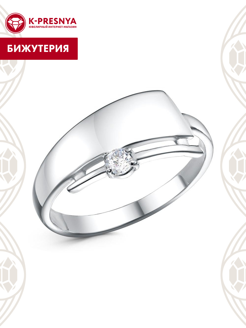 Кольцо бижутерия, покрытие - платинирование, вставка - фианит (недрагоценный камень)