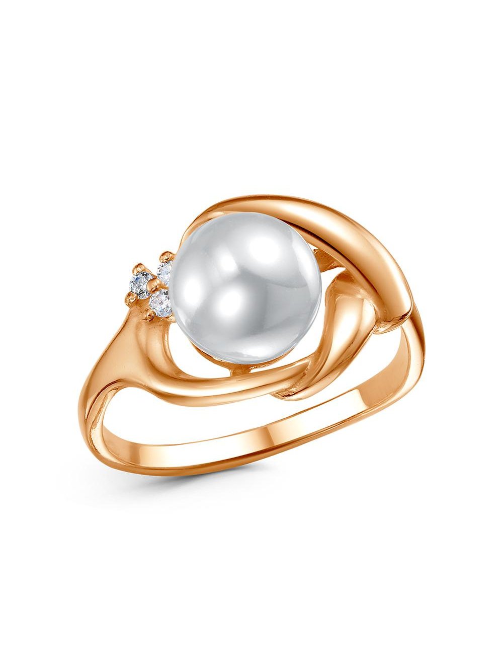 Кольцо серебро 925 пробы, покрытие - золочение, вставка - имитация жемчуга, фианит (недрагоценный камень)