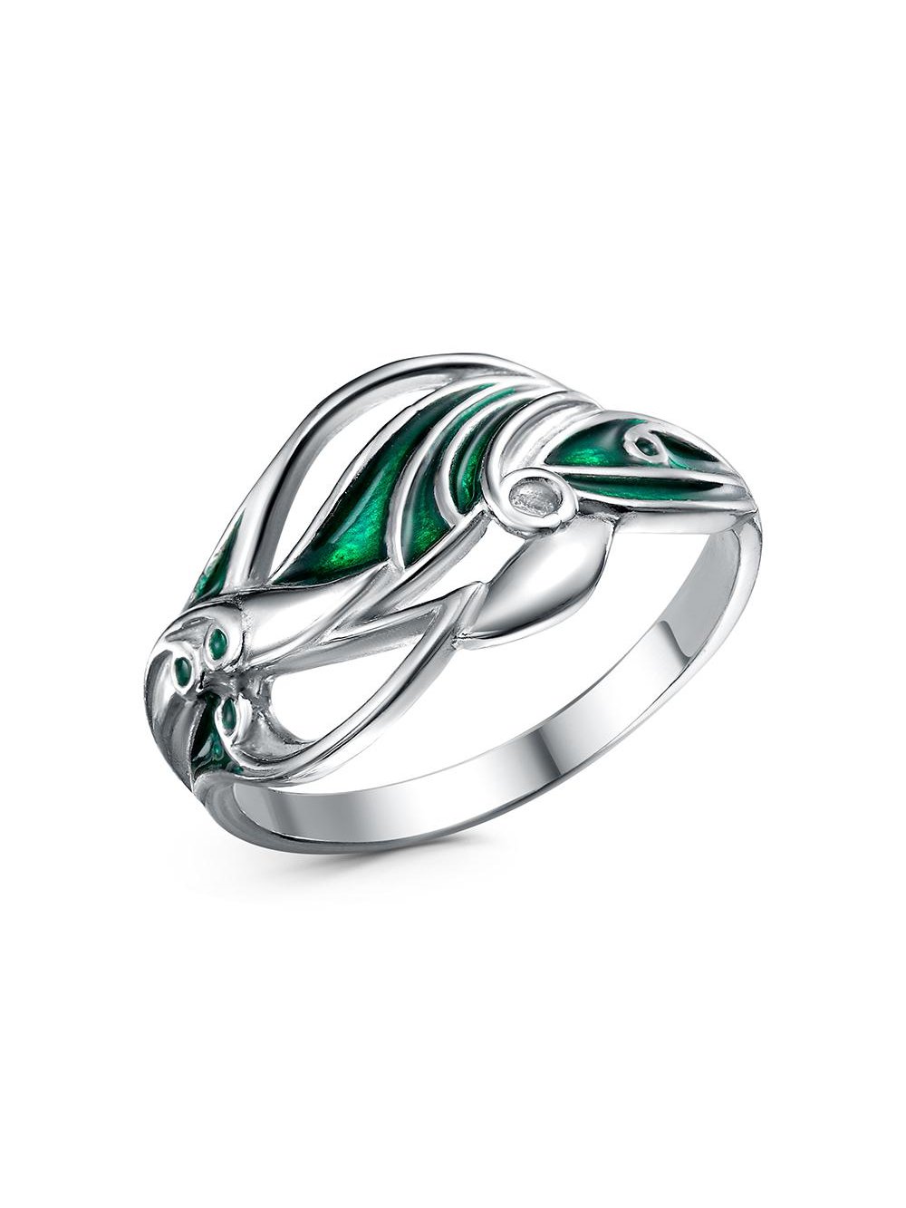 Кольцо бижутерия, покрытие - платинирование, отделка - эмаль, без вставок