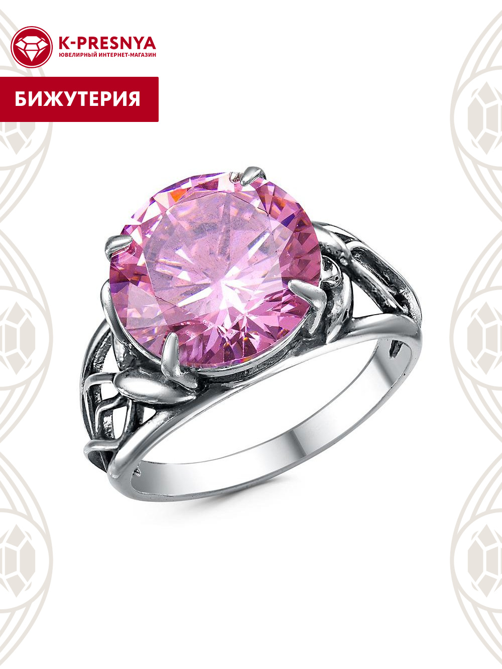 Кольцо бижутерия, покрытие - серебрение с оксидированием, вставка - фианит (недрагоценный камень)