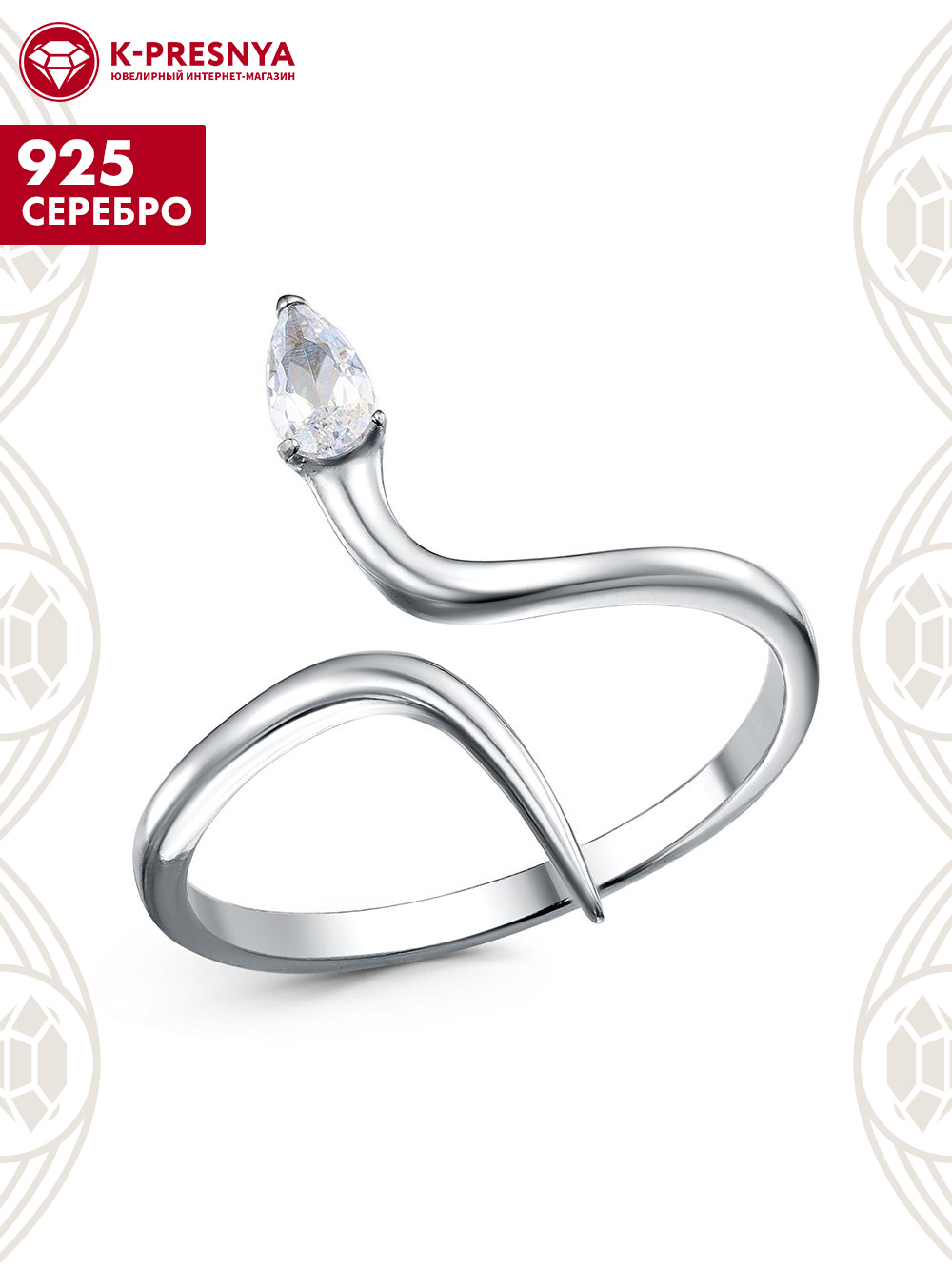 Кольцо серебро 925 пробы, покрытие - родирование, вставка - фианит (недрагоценный камень)