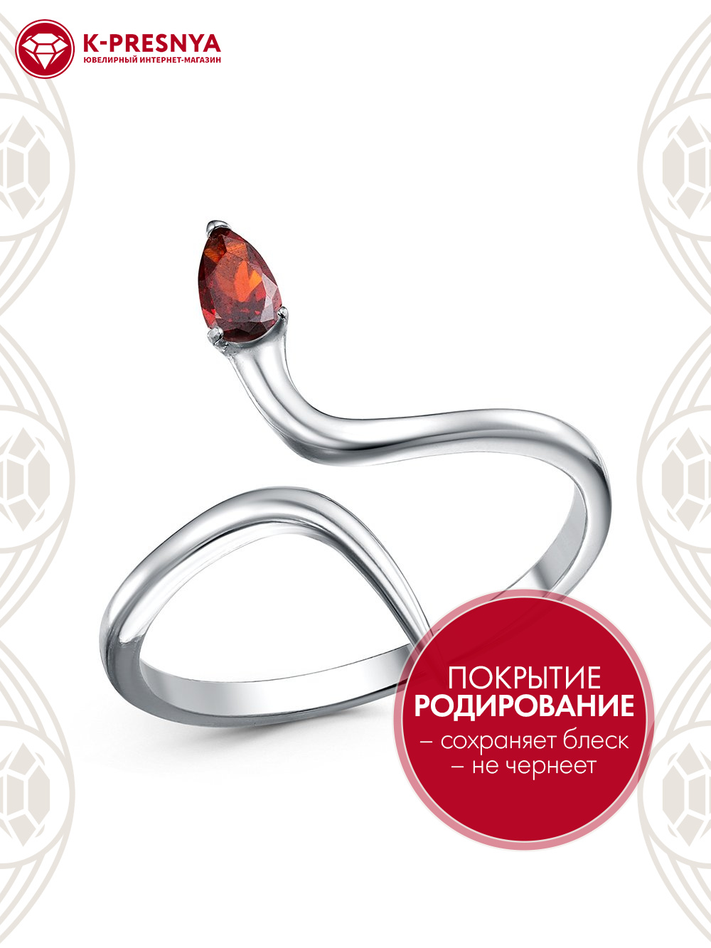 Кольцо серебро 925 пробы, покрытие - родирование, вставка - фианит (недрагоценный камень)