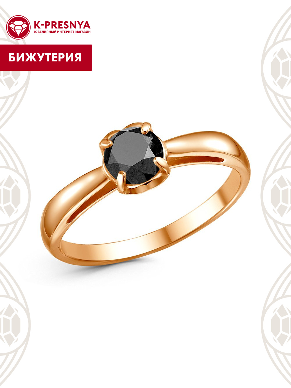Кольцо бижутерия, покрытие - золочение, вставка - фианит (недрагоценный камень)