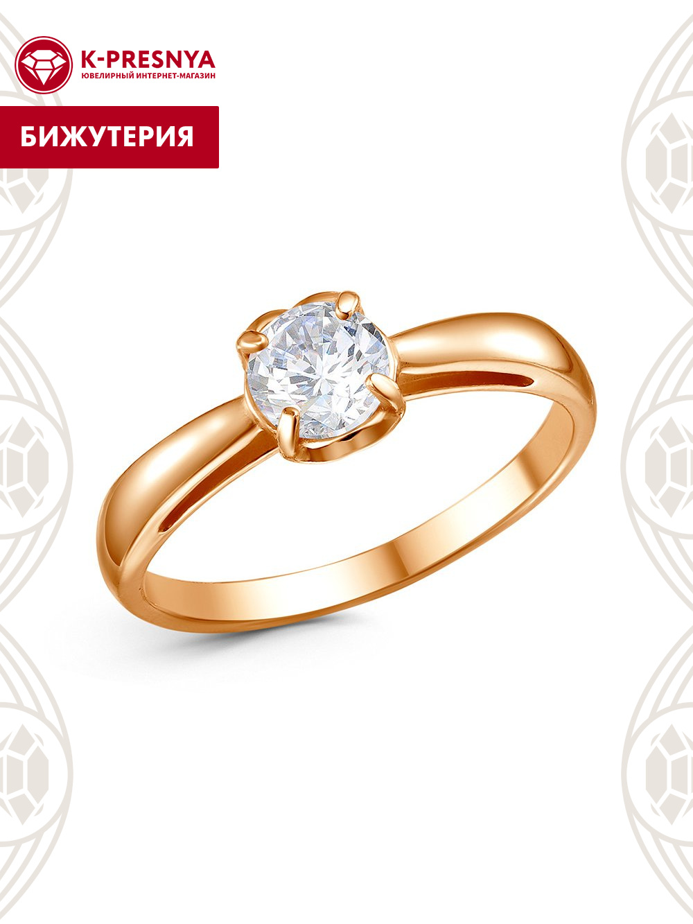 Кольцо бижутерия, покрытие - золочение, вставка - фианит (недрагоценный камень)
