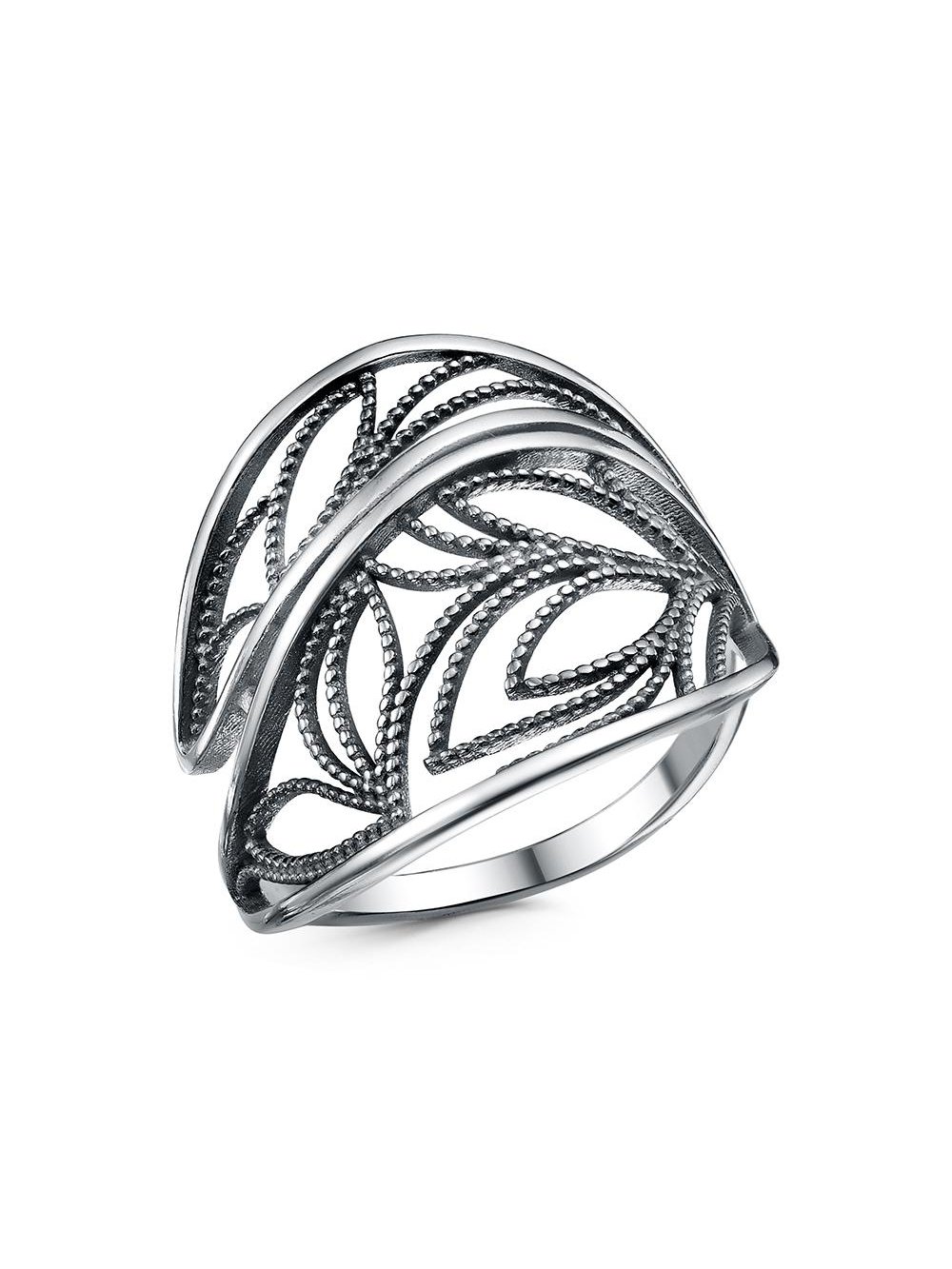 Кольцо бижутерия, покрытие - серебрение с оксидированием, без вставок