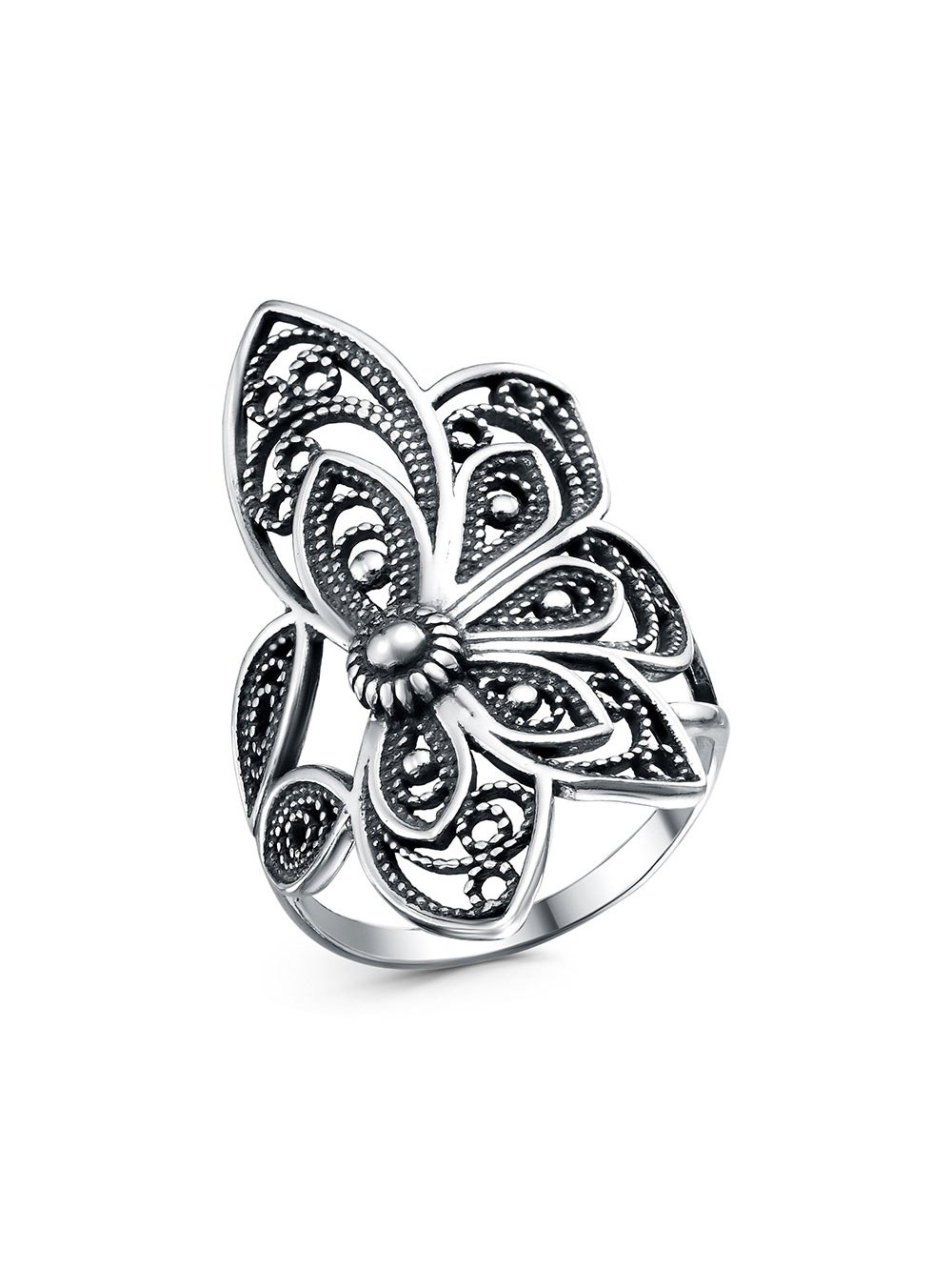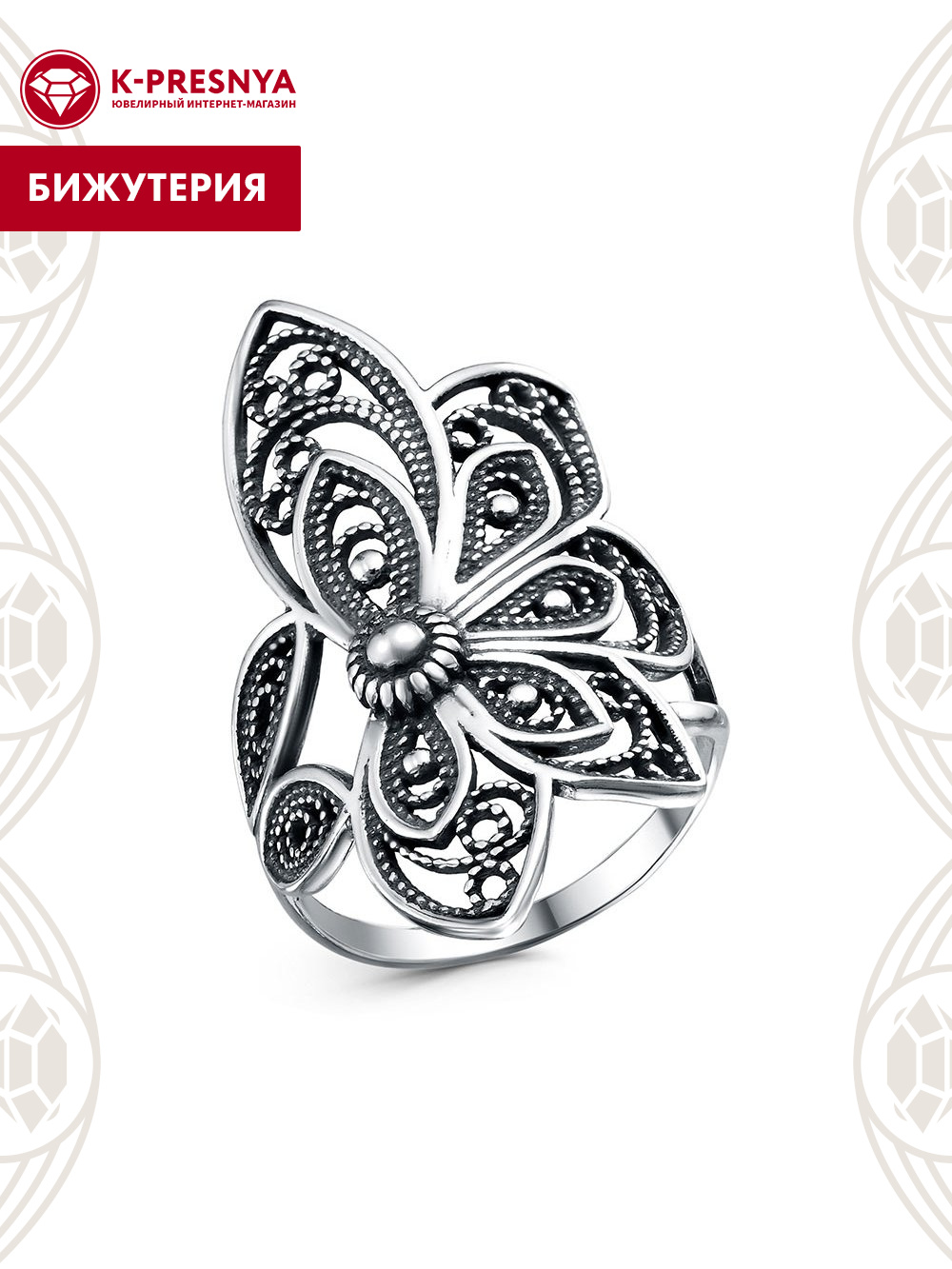 Кольцо бижутерия, покрытие - серебрение с оксидированием, без вставок