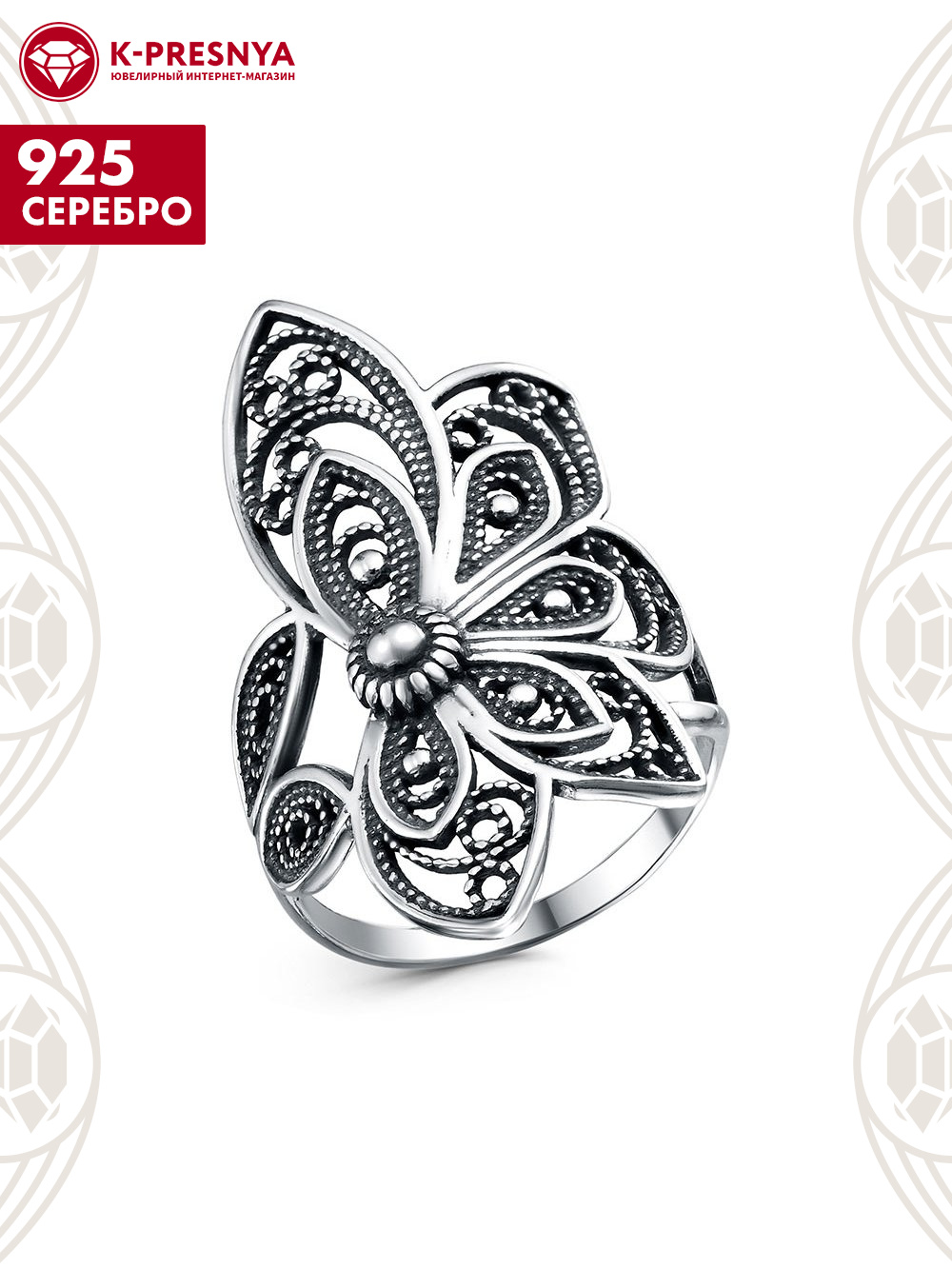 Кольцо серебро 925 пробы, покрытие - оксидирование, без вставок