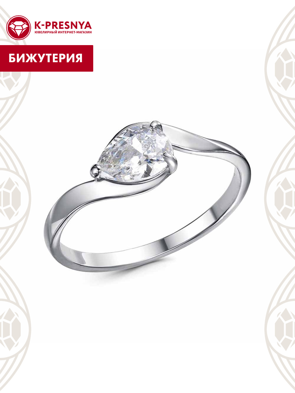 Кольцо бижутерия, покрытие - платинирование, вставка - фианит (недрагоценный камень)