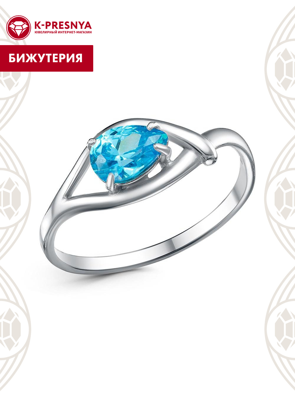 Кольцо бижутерия, покрытие - платинирование, вставка - фианит (недрагоценный камень)