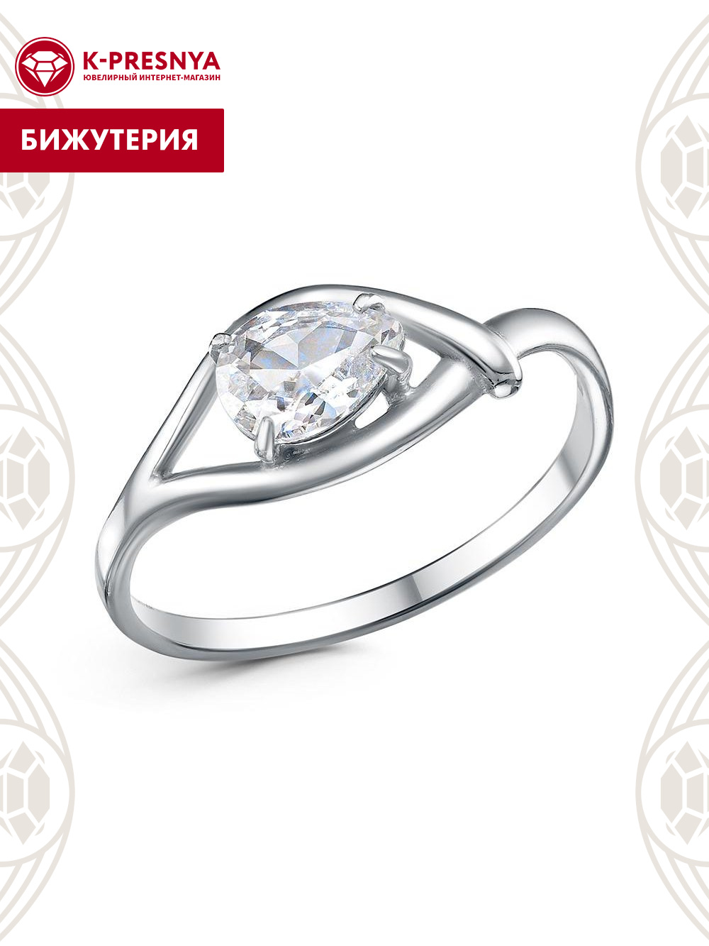 Кольцо бижутерия, покрытие - платинирование, вставка - фианит (недрагоценный камень)
