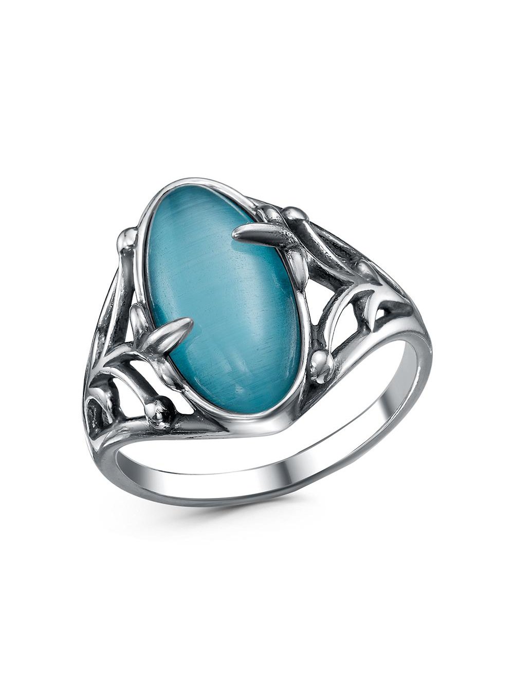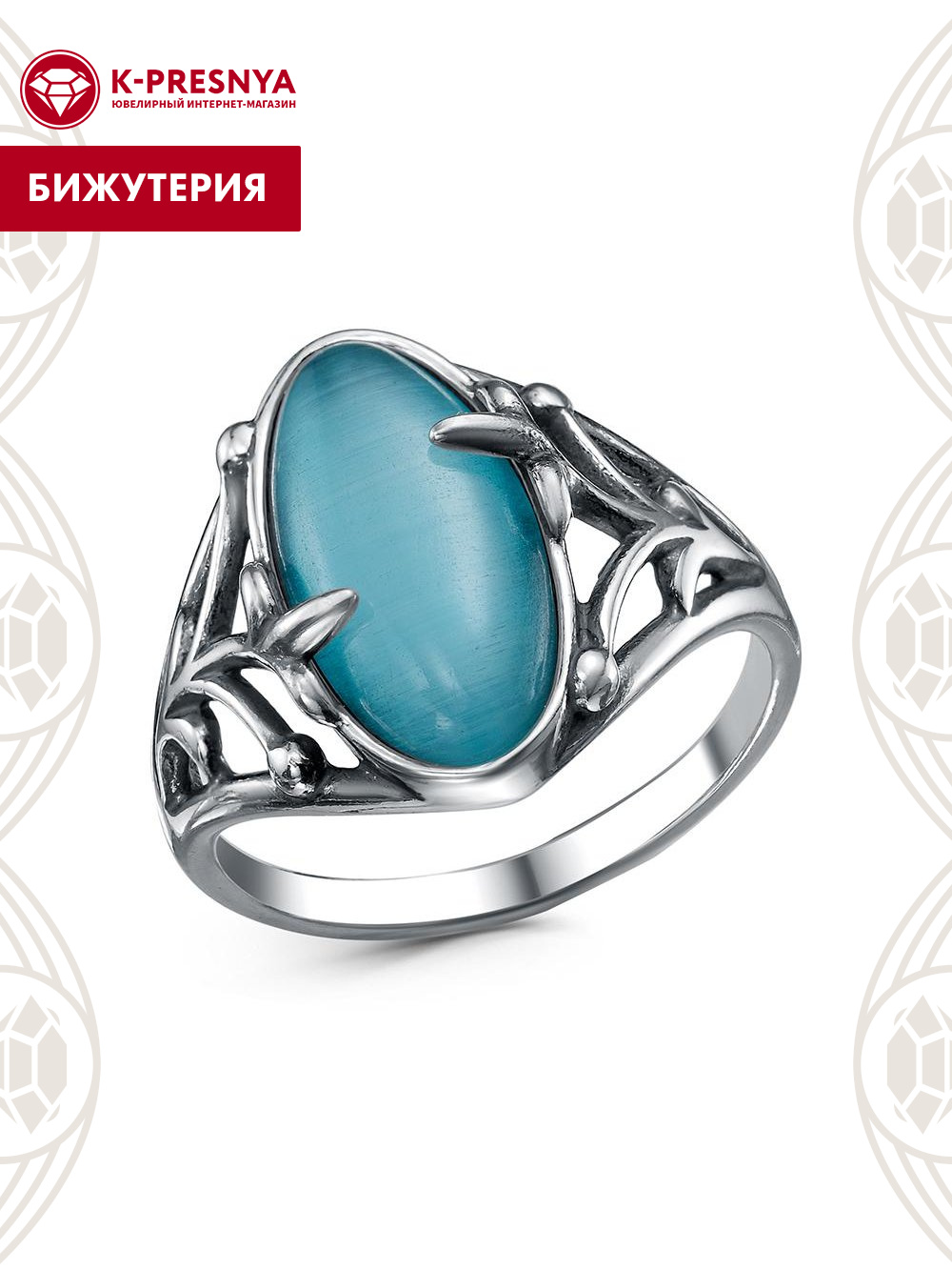 Кольцо бижутерия, покрытие - серебрение с оксидированием, вставка - искусственный кошачий глаз