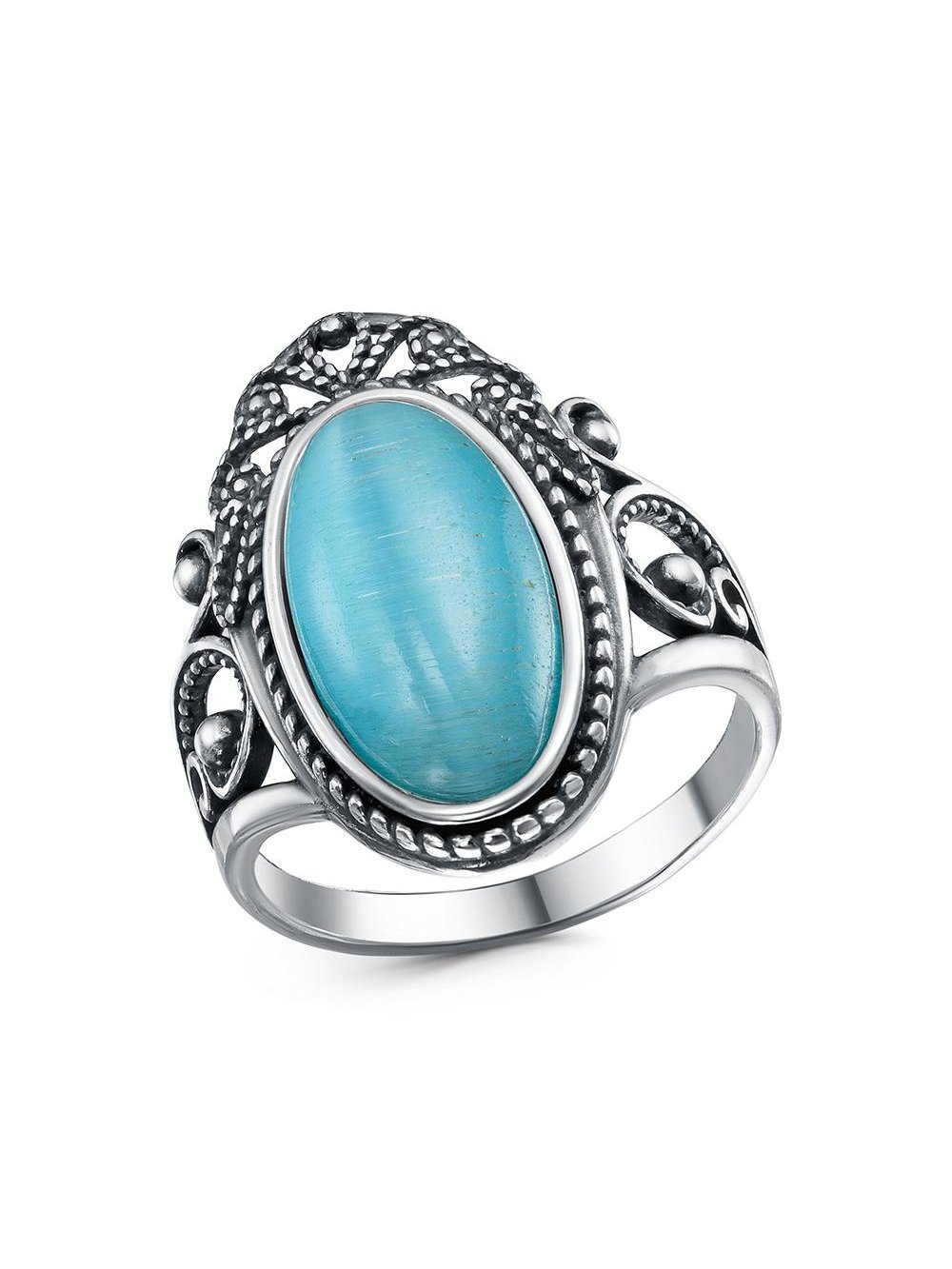 Кольцо серебро 925 пробы, покрытие - оксидирование, вставка - искусственный кошачий глаз