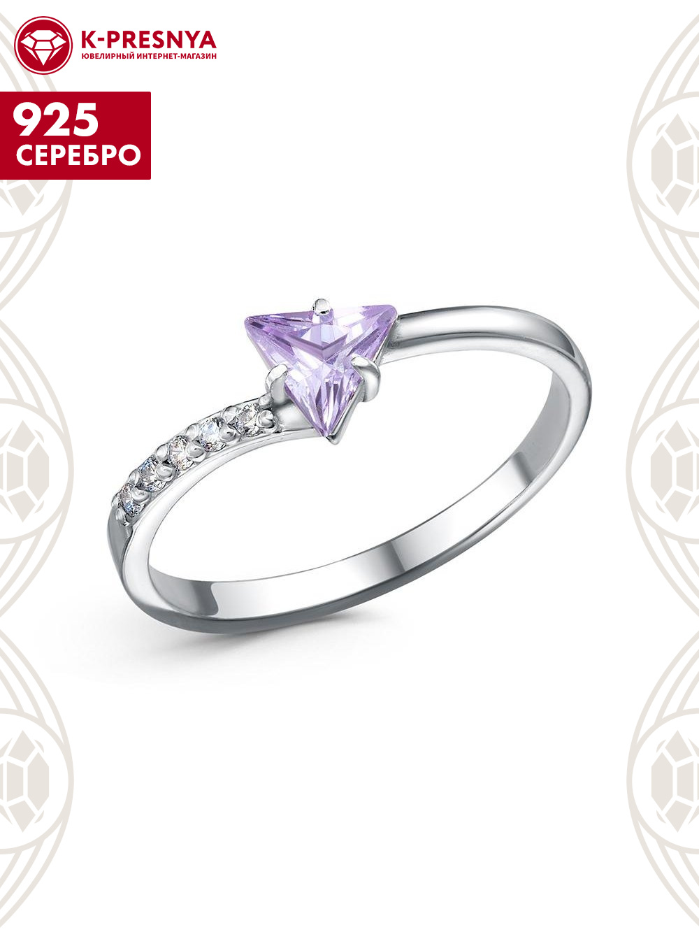 Кольцо серебро 925 пробы, покрытие - родирование, вставка - фианит (недрагоценный камень)