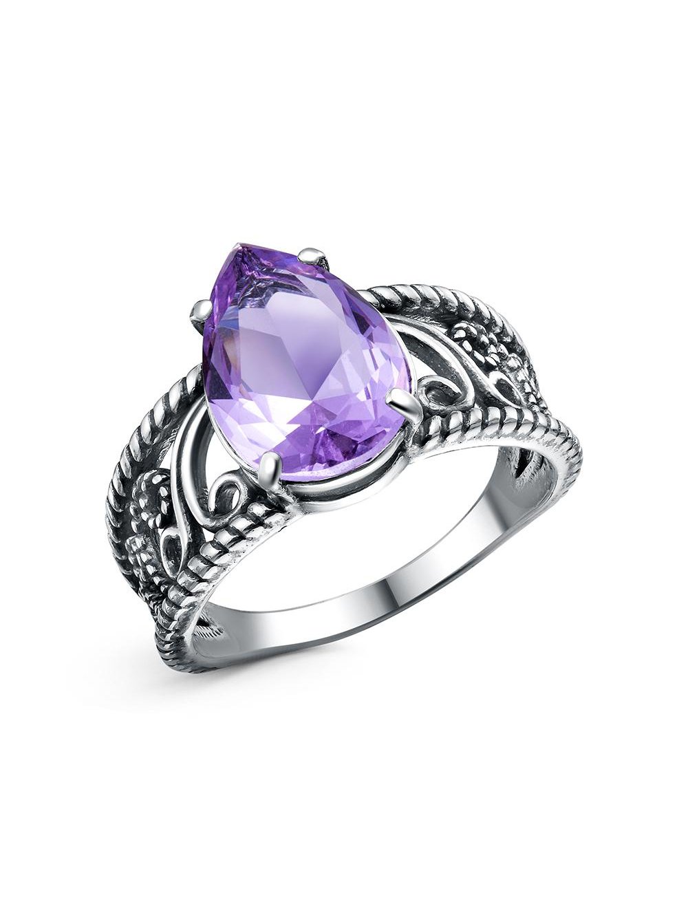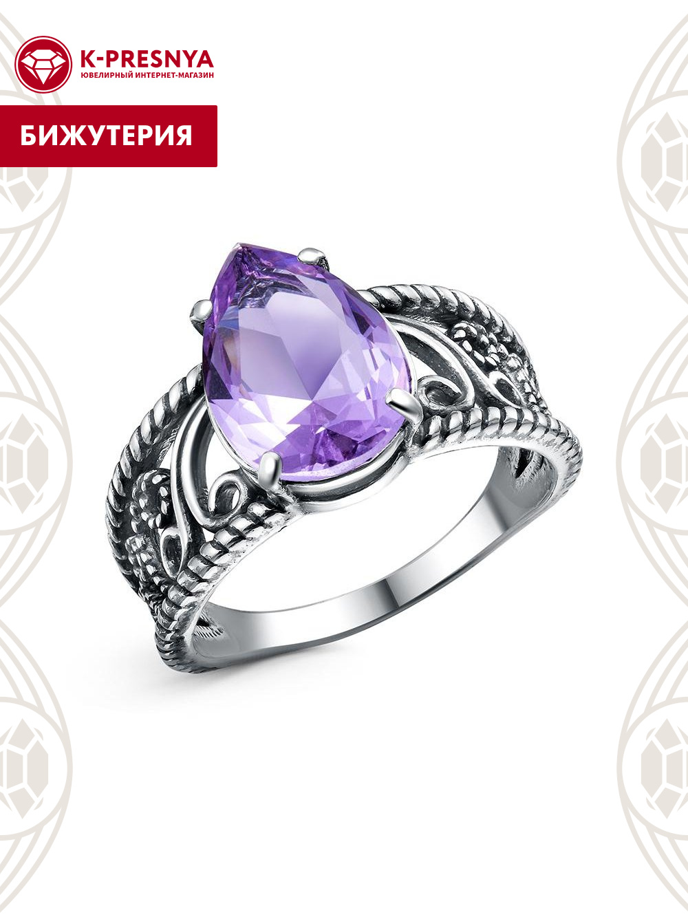 Кольцо бижутерия, покрытие - серебрение с оксидированием, вставка - стекло ювелирное