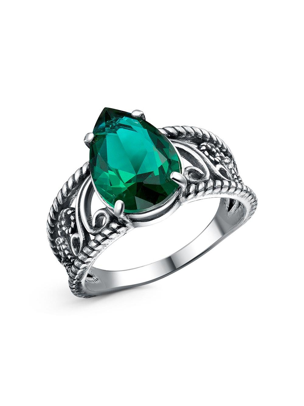Кольцо бижутерия, покрытие - серебрение с оксидированием, вставка - стекло ювелирное