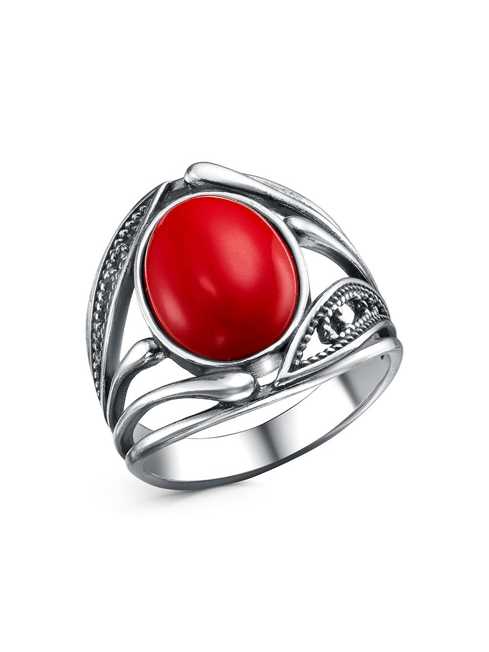 Кольцо бижутерия, покрытие - серебрение с оксидированием, вставка - искусственный коралл